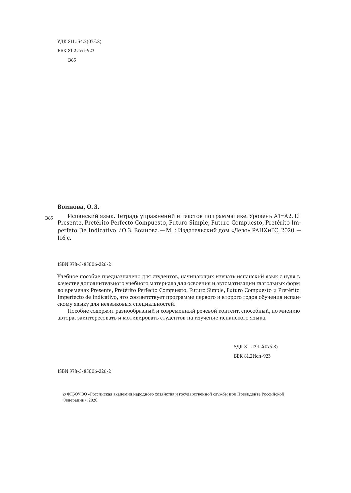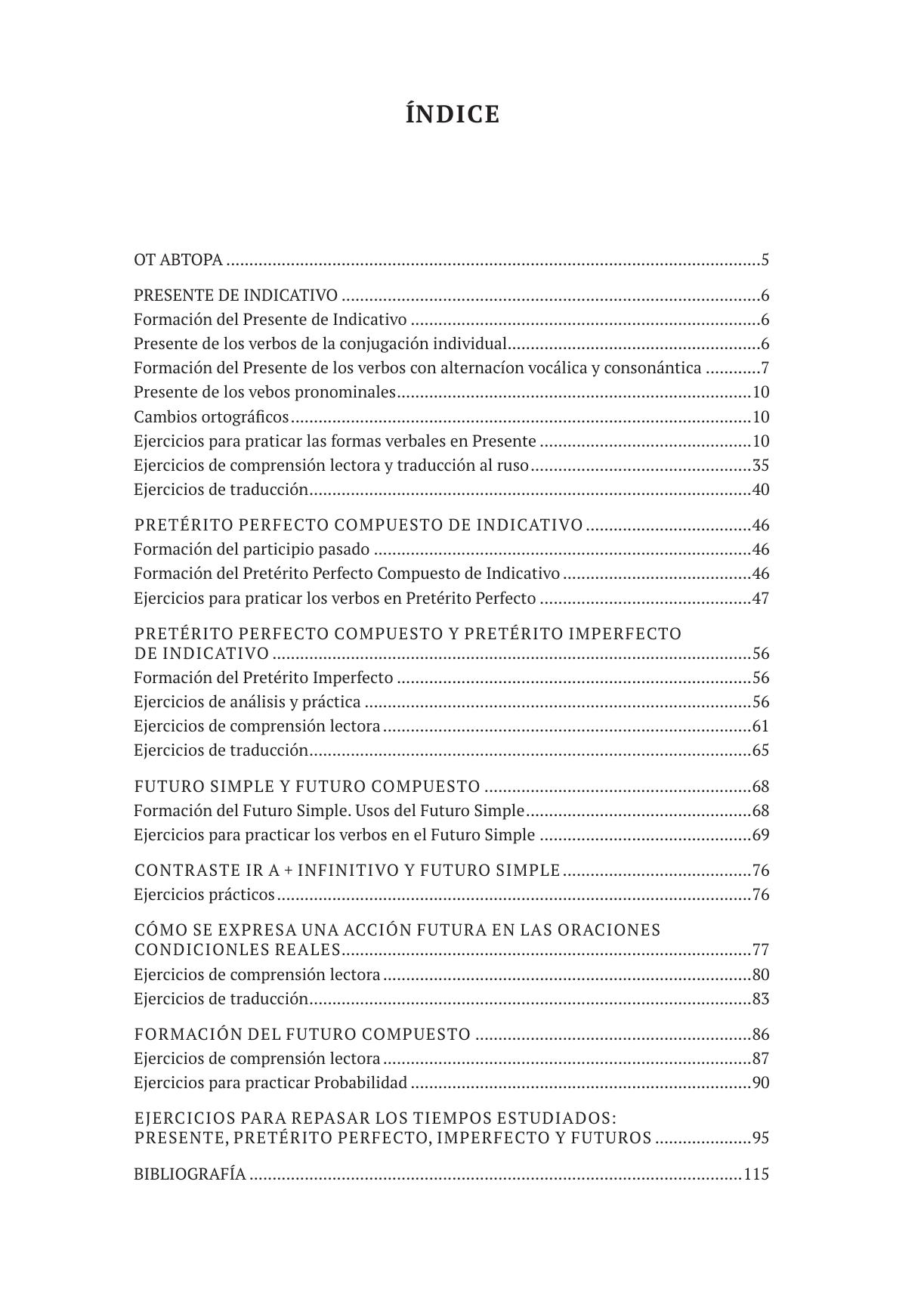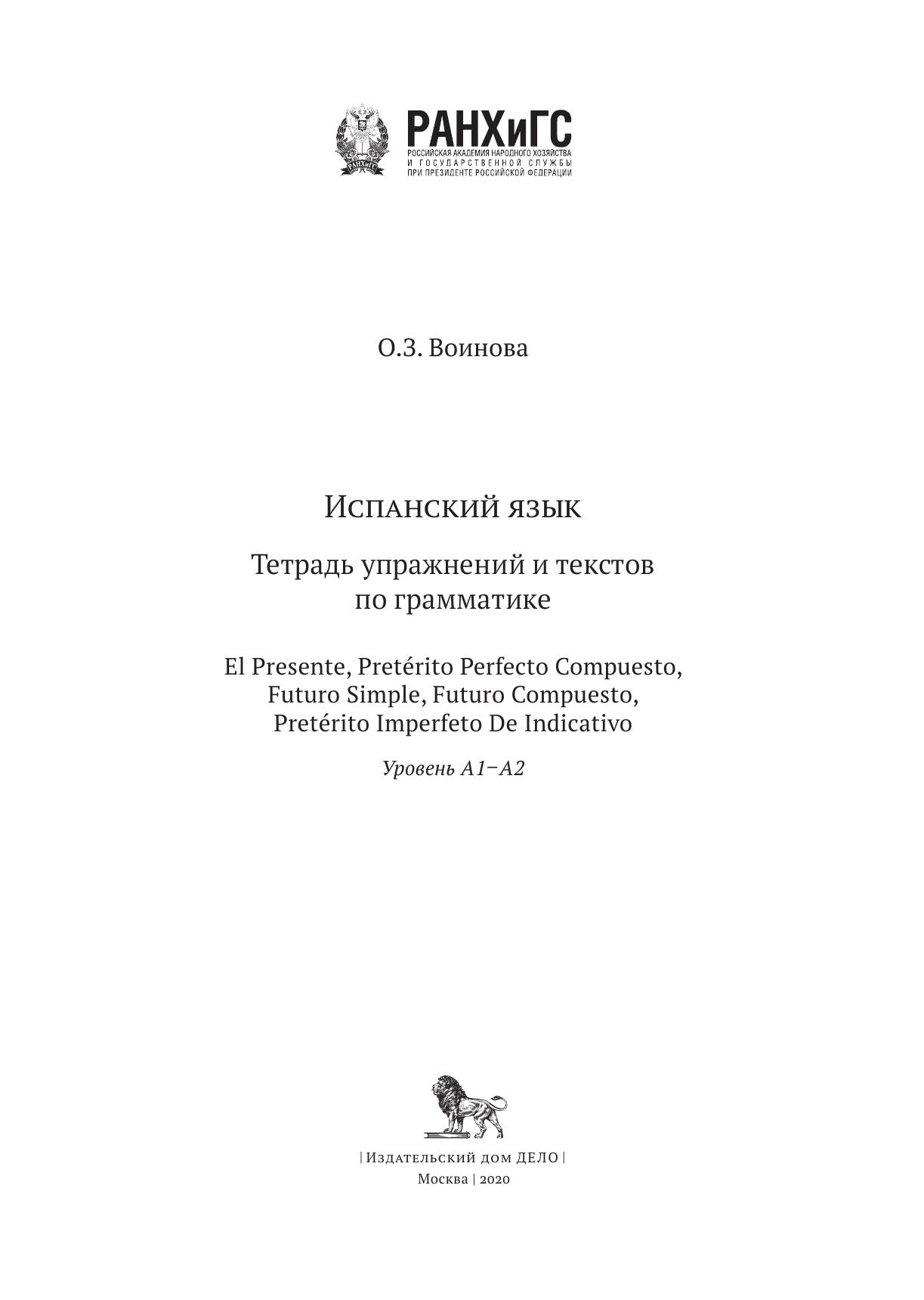 Учебное пособие предназначено для студентов, начинающих изучать испанский язык с нуля в качестве дополнительного учебного материала для освоения и автоматизации глагольных форм во временах Presente, Pretérito Perfecto Compuesto, Futuro Simple, Futuro Compuesto и Pretérito Imperfecto de Indicativo, что соответствует программе первого и второго годов обучения испанскому языку для неязыковых специальностей. Пособие содержит разнообразный и современный речевой контент, способный, по мнению автора, заинтересовать и мотивировать студентов на изучение испанского языка.