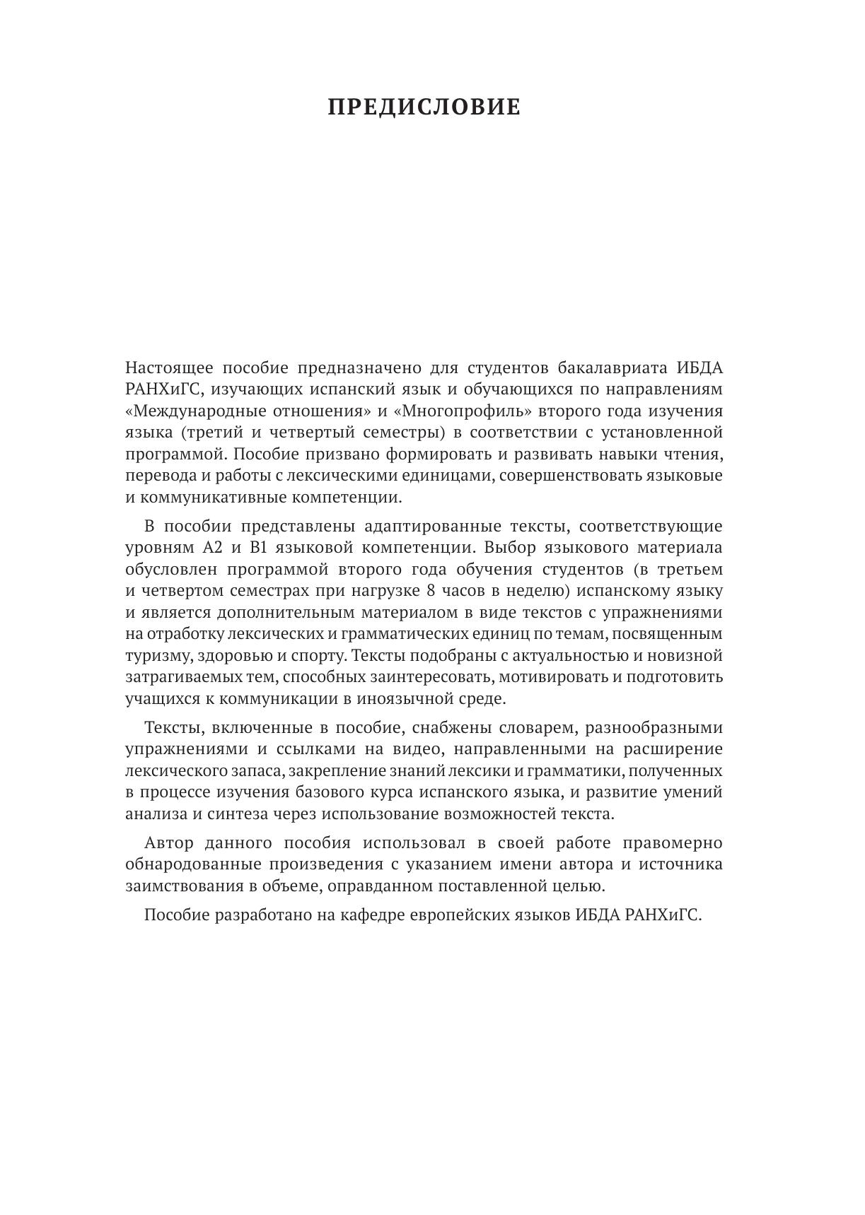 Настоящее пособие предназначено для студентов бакалавриата ИБДА РАНХиГС, обучающихся по направлениям «Международные отношения» и «Многопрофиль». В пособии представлены адаптированные тексты, соответствующие уровням А2 и В1 языковой компетенции по темам, посвященным туризму, здоровью и спорту. Рекомендуется привлечение данных материалов как дополнительных при освоении общего лексико-грамматического курса в третьем и четвертом семестрах.