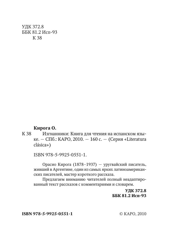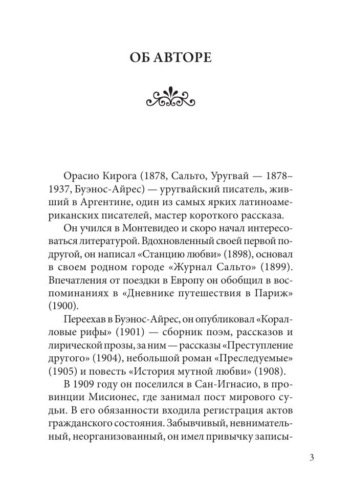 Орасио Кирога (1878–1937) — уругвайский писатель, живший в Аргентине, один из самых ярких латиноамериканских писателей, мастер короткого рассказа. Предлагаем вниманию читателей полный неадаптированный текст рассказов с комментариями и словарем.