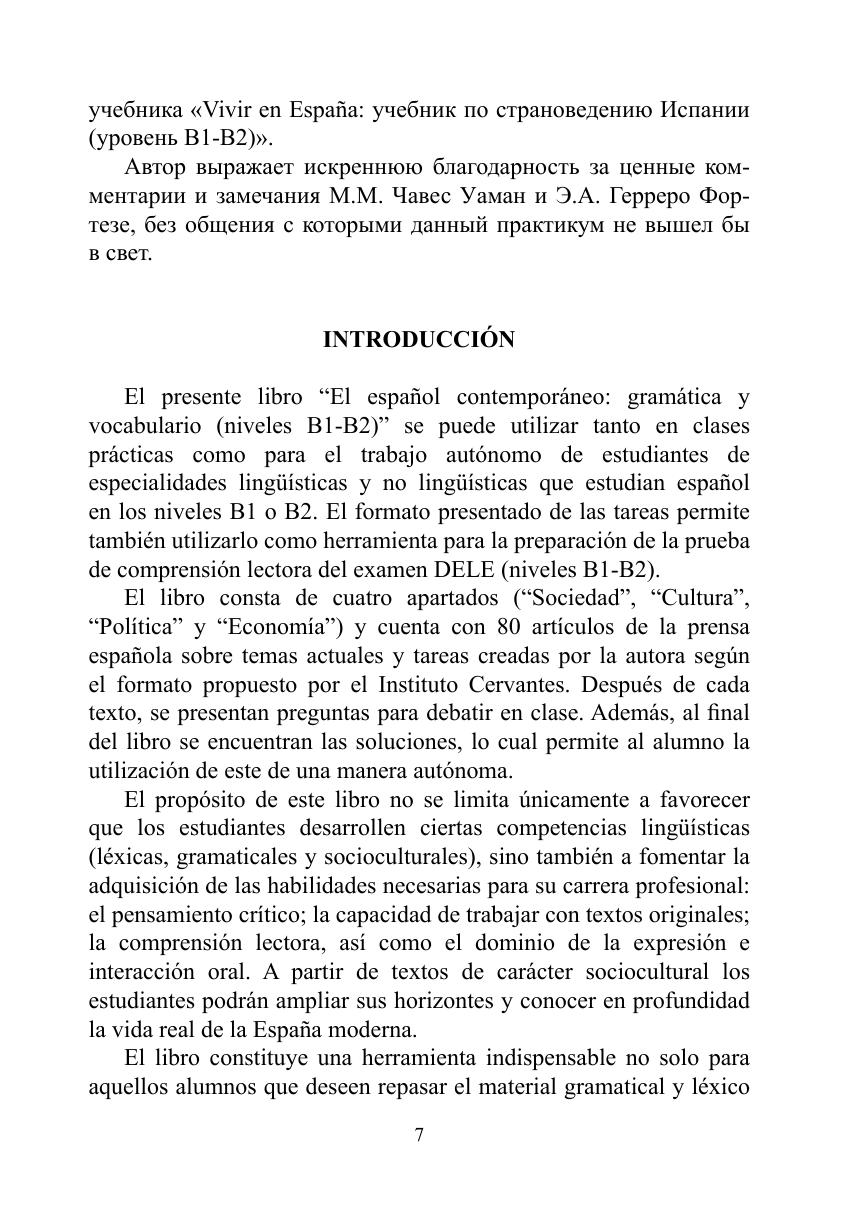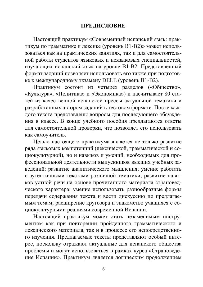 Данный практикум предназначен не только для развития языковой компетенции студентов, изучающих испанский язык на уровне B2, но и для расширения их профессионального кругозора.