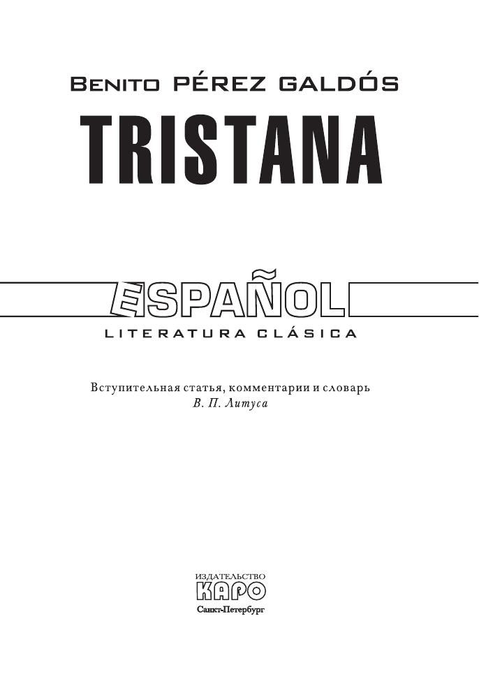 Бенито Перес Гальдос (1843–1920) — наиболее значительный представитель критического реализма в Испании. За свою более чем полувековую писательскую деятельность он создал семьдесят семь романов, из них два цикла исторических романов под общим названием «Национальные эпизоды». Роман «Тристана» входит в цикл «Современных романов», над которыми писатель работал начиная с 1880 года и до конца жизни. В предлагаемое вниманию читателей издание входит полный текст произведения, снабженный подробным комментарием и словарем. Книга может быть рекомендована студентам-испанистам, преподавателям испанского языка, специалистам в области испанской и западноевропейской литературы, а также всем тем, кто интересуется языком, культурой и историей Испании.