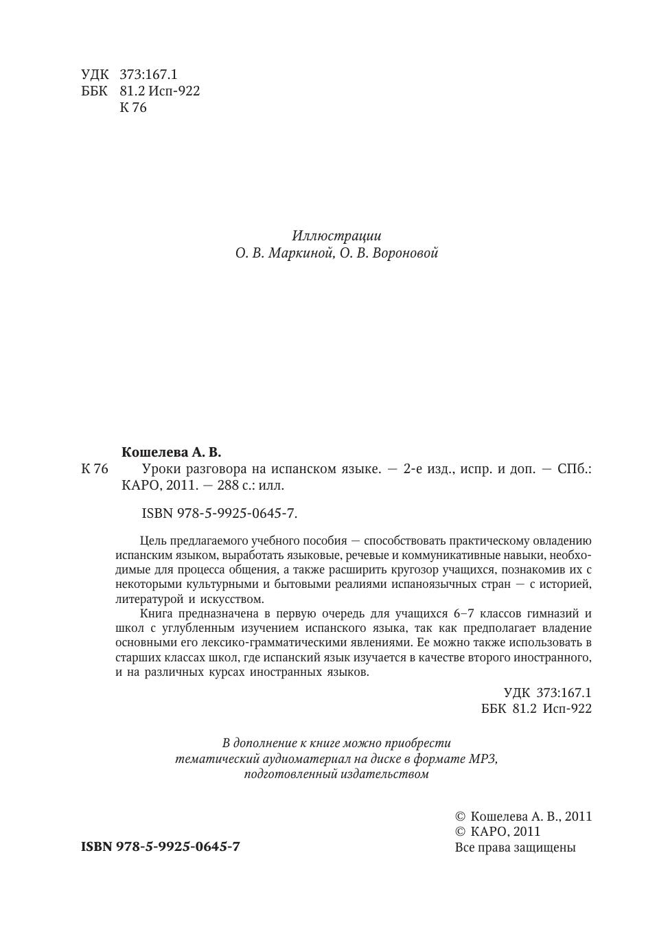 Цель предлагаемого учебного пособия — способствовать практическому овладению испанским языком, выработать языковые, речевые и коммуникативные навыки, необходимые для процесса общения, а также расширить кругозор учащихся, познакомив их с некоторыми культурными и бытовыми реалиями испаноязычных стран — с историей, литературой и искусством.Книга предназначена в первую очередь для учащихся 6–7 классов гимназий и школ с углубленным изучением испанского языка, так как предполагает владение основными его лексико-грамматическими явлениями. Ее можно также использовать в старших классах школ, где испанский язык изучается в качестве второго иностранного, и на различных курсах иностранных языков.