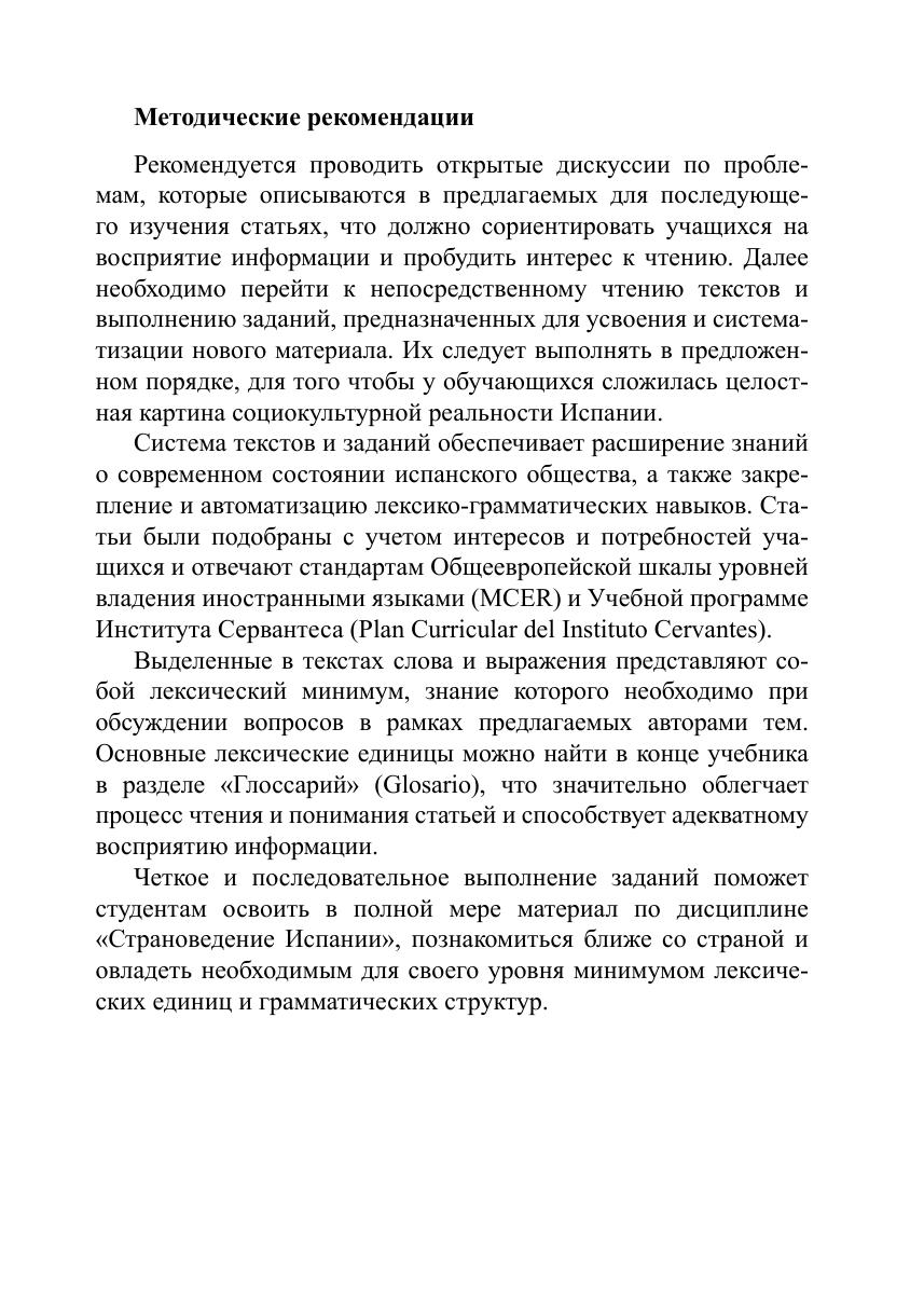 Данный учебник по страноведению Испании предназначен не только для развития языковой компетенции, но и расширения профессионального кругозора студентов, изучающих испанский язык на старших курсах языковых и неязыковых вузов (уровень B1-B2). Основные задачи, преследуемые авторами, – познакомить учащихся с социокультурными реалиями Испании, научить работать как с адаптированными, так и с неадаптированными текстами по темам, охватывающим четыре сферы жизни