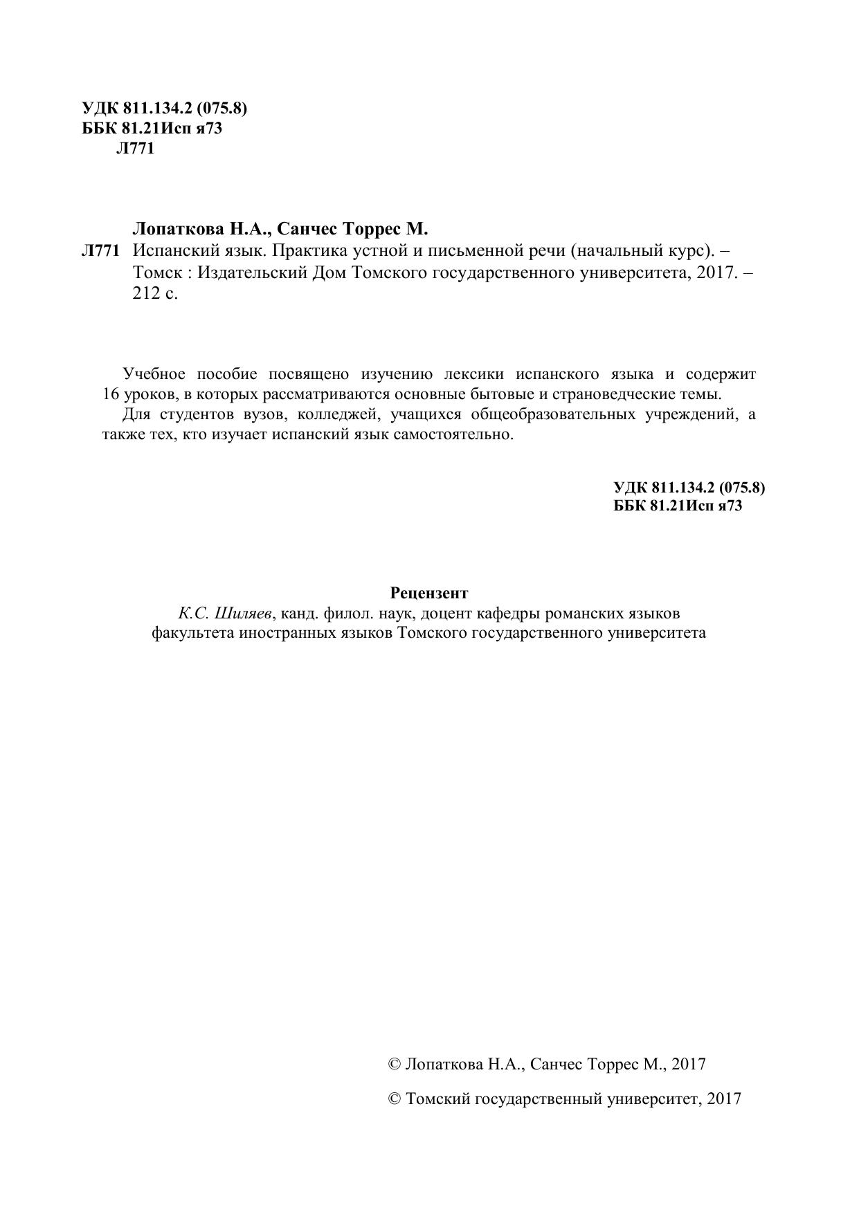 Авторы: Лопаткова Н.А., Санчес Торрес М.