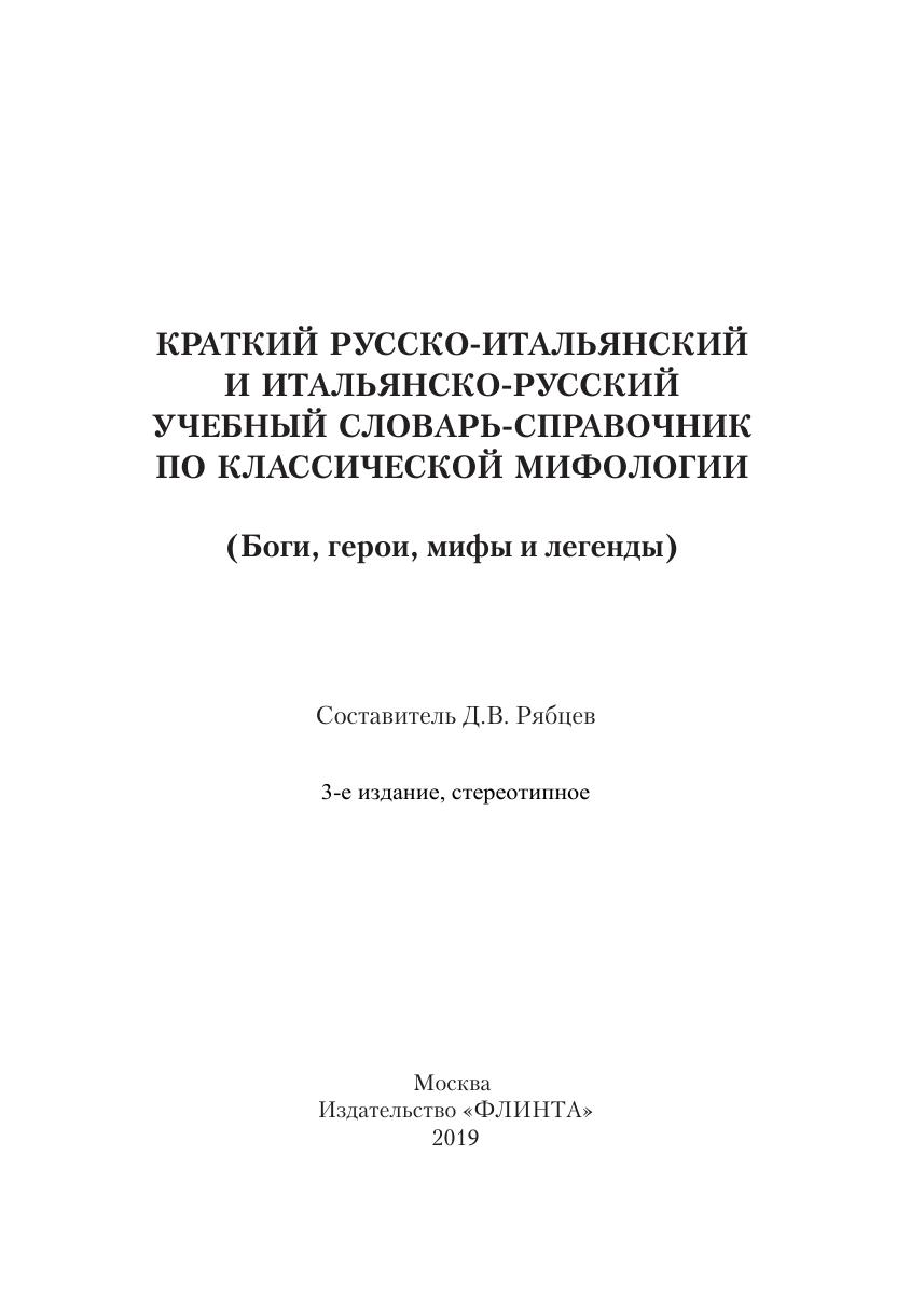 Краткий русско-итальянский и итальянско-русский учебный словарь-справочник по классической мифологии