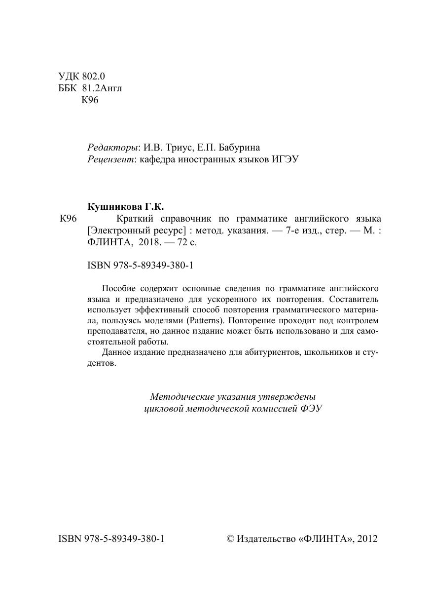 Краткий справочник по грамматике английского языка