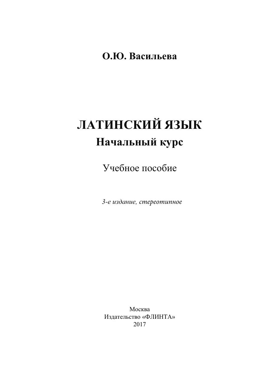 Латинский язык. Начальный курс. Учебное пособие