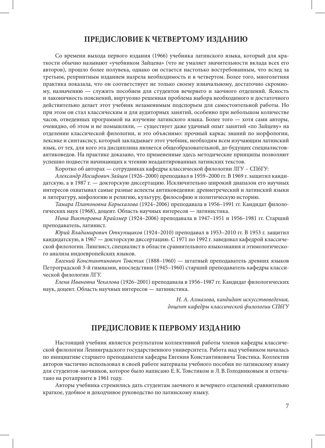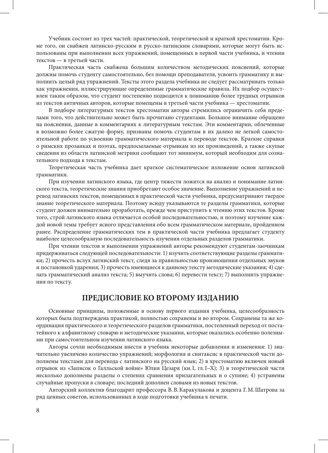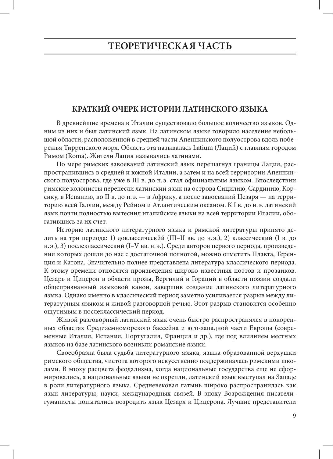 Учебник «Латинский язык», составленный ведущими преподавателями кафедры классической филологии ЛГУ — СПбГУ, выдержал уже три издания и по-прежнему является самым востребованным пособием для изучающих латинский язык благодаря прекрасно продуманной методике изложения материала и удачной подборке упражнений и текстов. Учебник содержит упражнения по переводу с латинского языка на русский и с русского на латынь, хрестоматию отрывков неадаптированных произведений римских авторов, теоретический справочник, а также латинско-русский и русско-латинский словари. Кроме того, каждый грамматический раздел снабжен поурочным словарем. В учебнике содержатся многочисленные разъяснительные примечания к предлагаемым для перевода текстам, а наиболее трудные вопросы грамматики, помимо систематического изложения в теоретическом справочнике, освещаются также в пояснениях к упражнениям практической части. Учебник предназначен для студентов, магистрантов и аспирантов, изучающих латинский язык самостоятельно или под руководством преподавателя, а также для самого широкого круга интересующихся классическими языками.