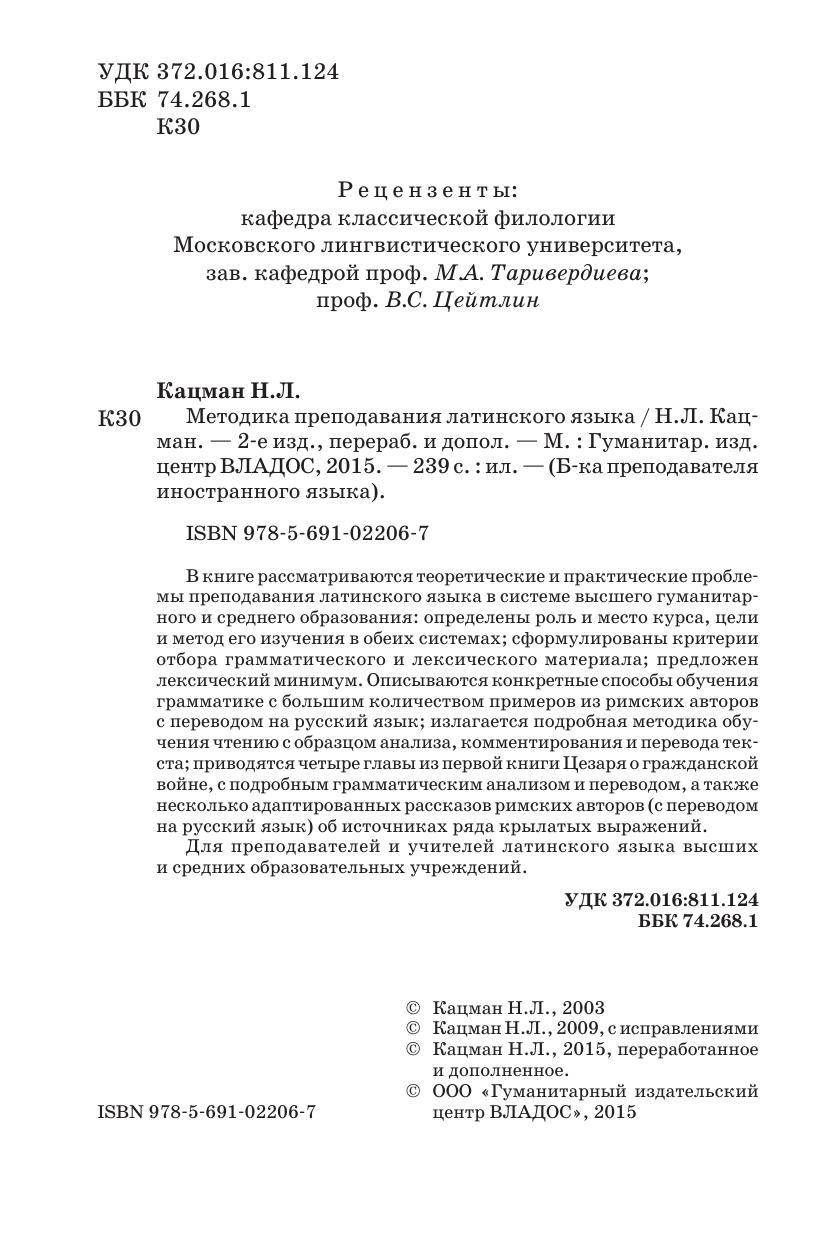 В книге рассматриваются теоретические и практические проблемы преподавания латинского языка в системе высшего гуманитарного и среднего образования: определены роль и место курса, цели и метод его изучения в обеих системах; сформулированы критерии отбора грамматического и лексического материала; предложен лексический минимум. Описываются конкретные способы обучения грамматике с большим количеством примеров из римских авторов с переводом на русский язык; излагается подробная методика обучения чтению с образцом анализа, комментирования и перевода текста; приводятся четыре главы из первой книги Цезаря о гражданской войне, с подробным грамматическим анализом и переводом, а также несколько адаптированных рассказов римских авторов (с переводом на русский язык) об источниках ряда крылатых выражений. Для преподавателей и учителей латинского языка высших и средних образовательных учреждений.