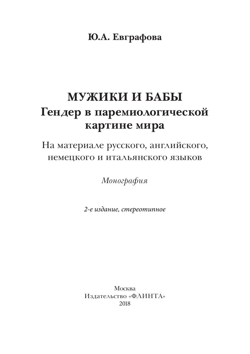 Мужики и бабы: гендер в паремиологической картине мира (на материале русского, английского, немецкого и итальянского языков)