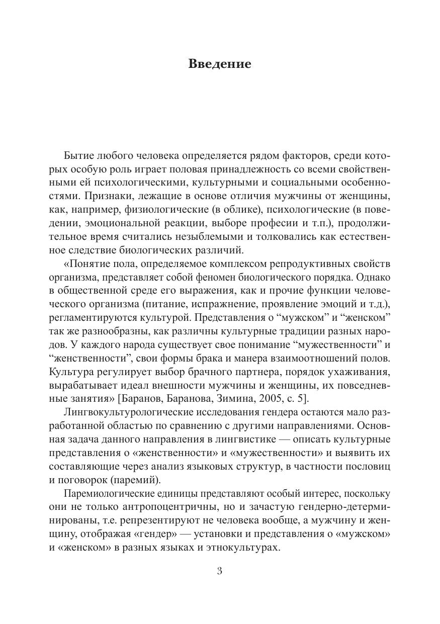 Монография посвящена сравнительно-сопоставительному лингвокультурологическому исследованию особенностей вербализации гендера в паремиологической картине мира паремий русского, английского, немецкого и итальянского языков. В первой главе дается краткий обзор исторического развития гендерных исследований, а также рассматриваются направления современной гендерологии и понятие «гендер». Вторая глава посвящена пословицам и поговорокам как языковому феномену, исследованию исторического развития трактовок языковой картины мира и рассмотрению соотношения понятий языковой и паремиологчиеской картин мира. В третьей главе описывается авторская методика сравнительно-сопоставительного лингвокультурологического анализа гендера в паремиологической картине мира, а также проводится анализ по трем признакам, обнаруживаемым при вербализации обоих полов: биологическим, психологическим и социальным.
