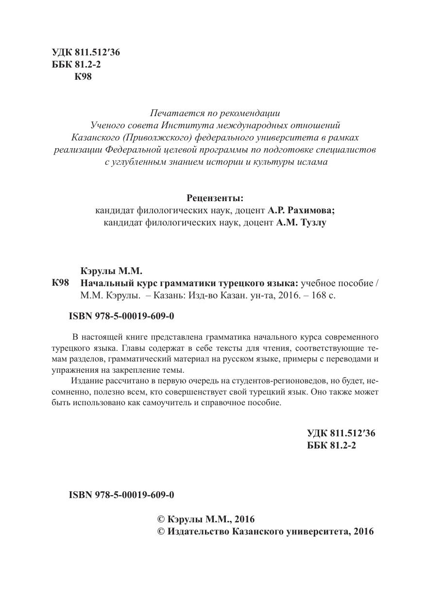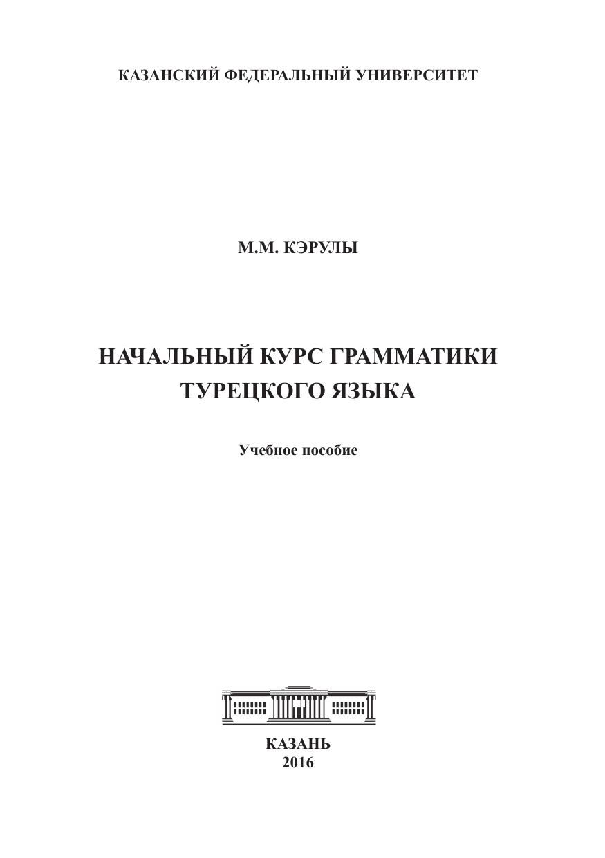 Начальный курс грамматики турецкого языка: учeбное пособие