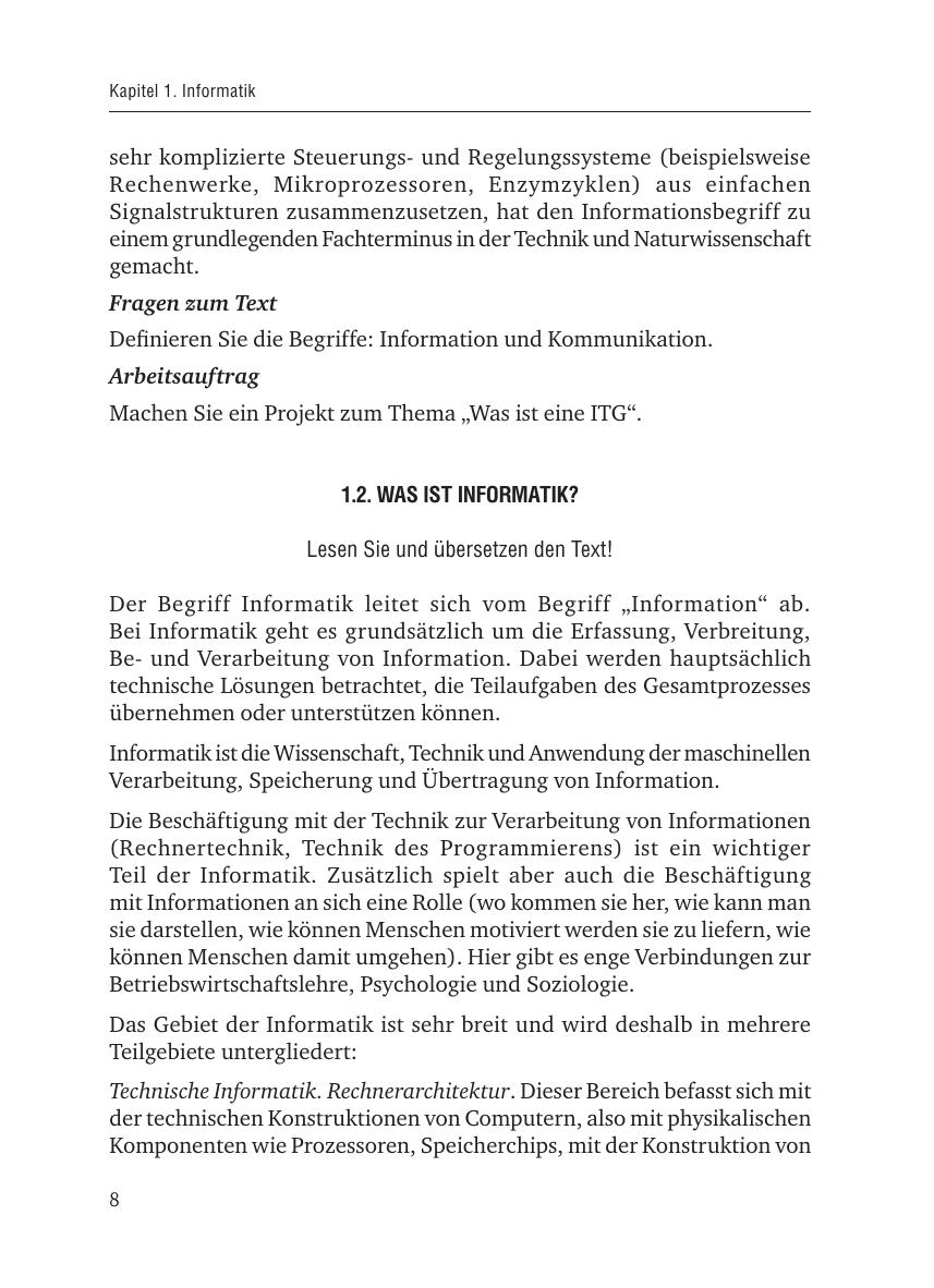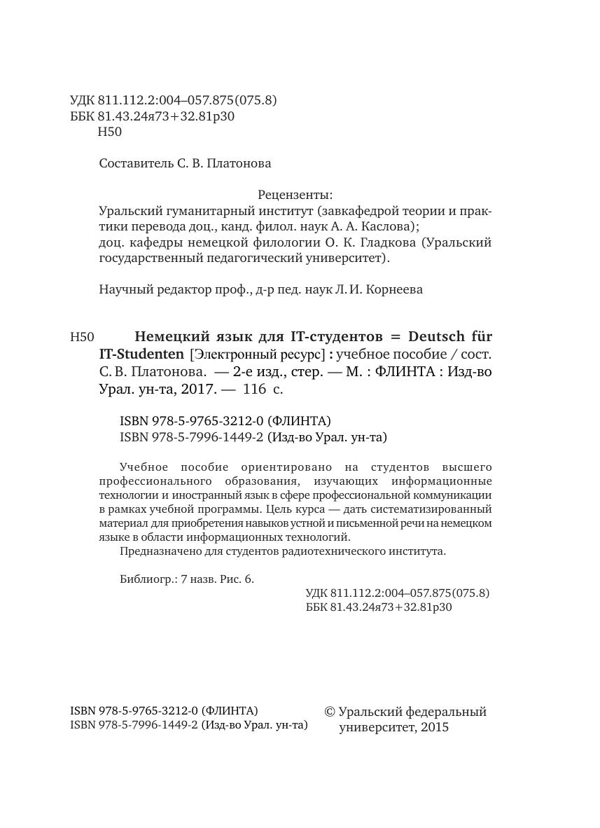 Учебное пособие ориентировано на студентов высшего профессионального образования, изучающих информационные технологии и иностранный язык в сфере профессиональной коммуникации в рамках учебной программы. Цель курса — дать систематизированный материал для приобретения навыков устной и письменной речи на немецком языке в области информационных технологий. Предназначено для студентов радиотехнического института.