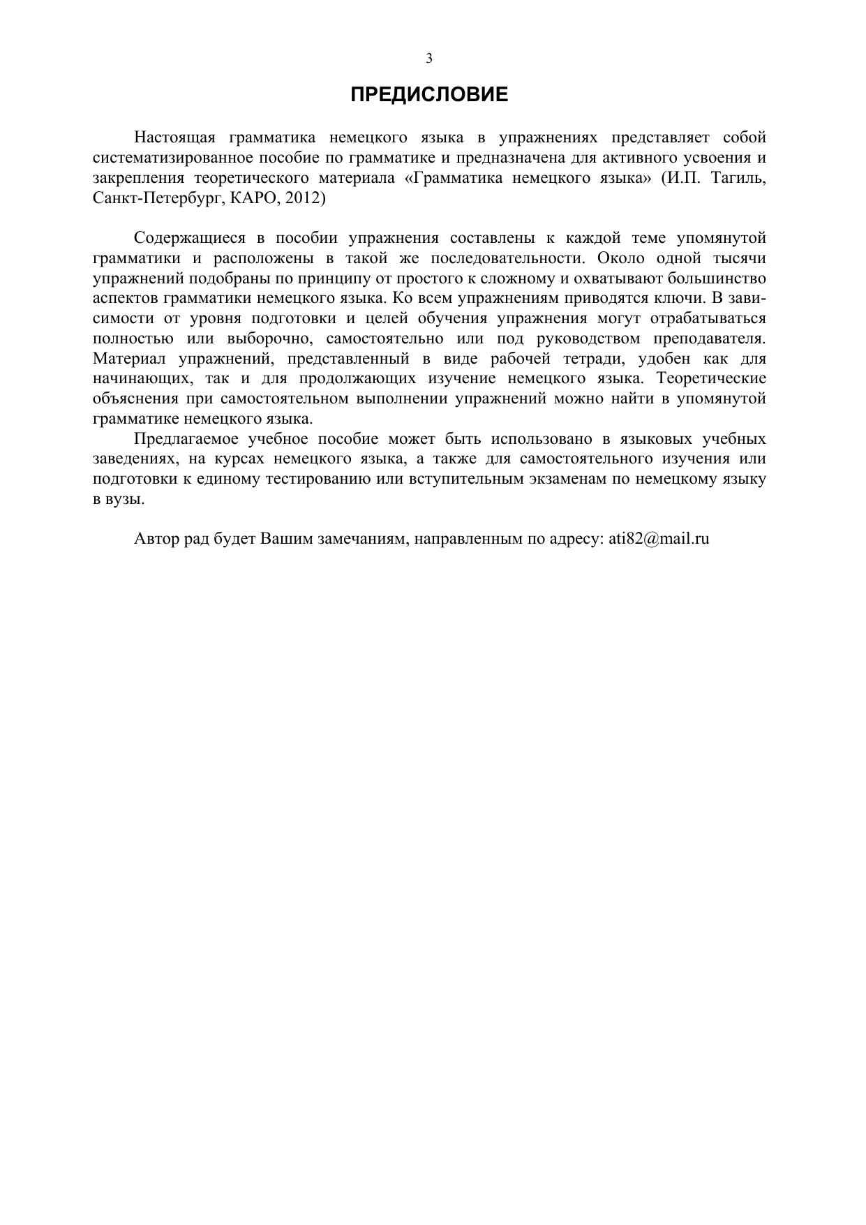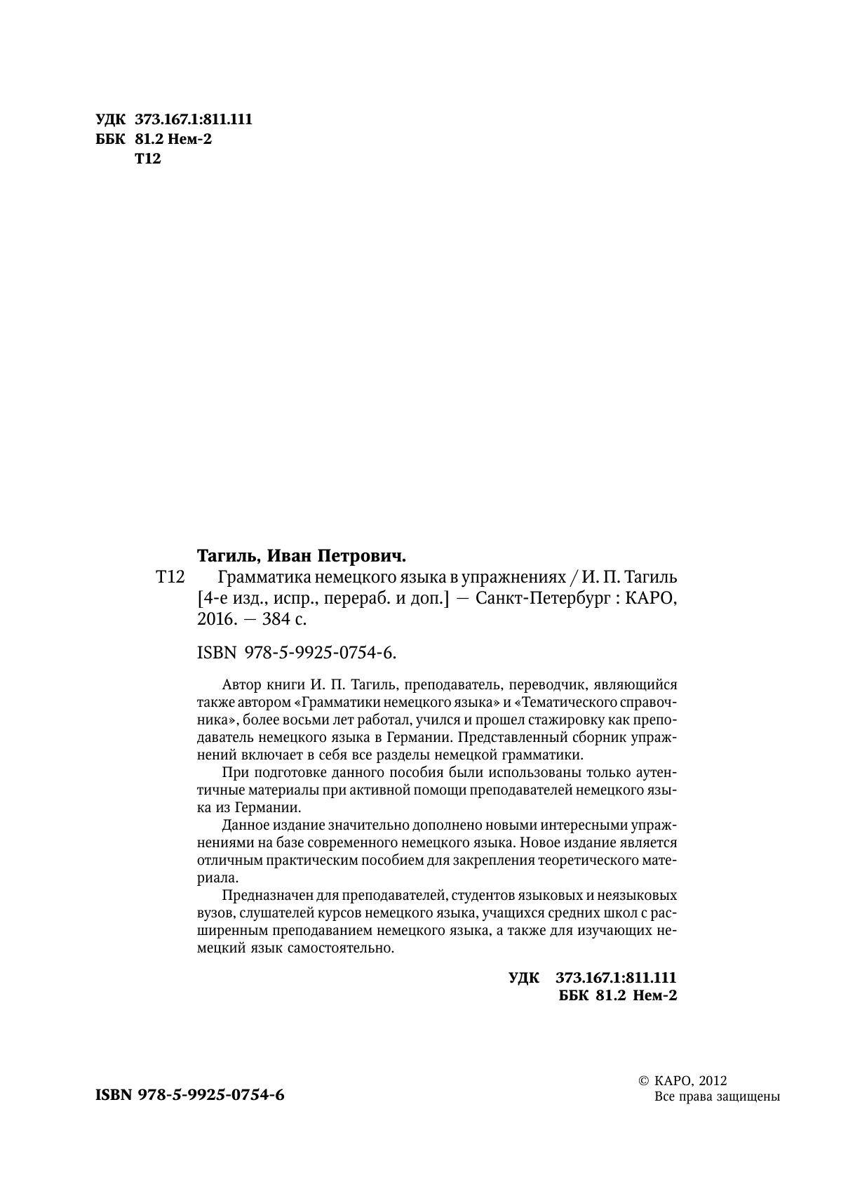 Автор книги И. П. Тагиль, преподаватель, переводчик, являющийся также автором «Грамматики немецкого языка» и «Тематического справочника», более восьми лет работал, учился и прошел стажировку как преподаватель немецкого языка в Германии. Представленный сборник упражнений включает в себя все разделы немецкой грамматики.
