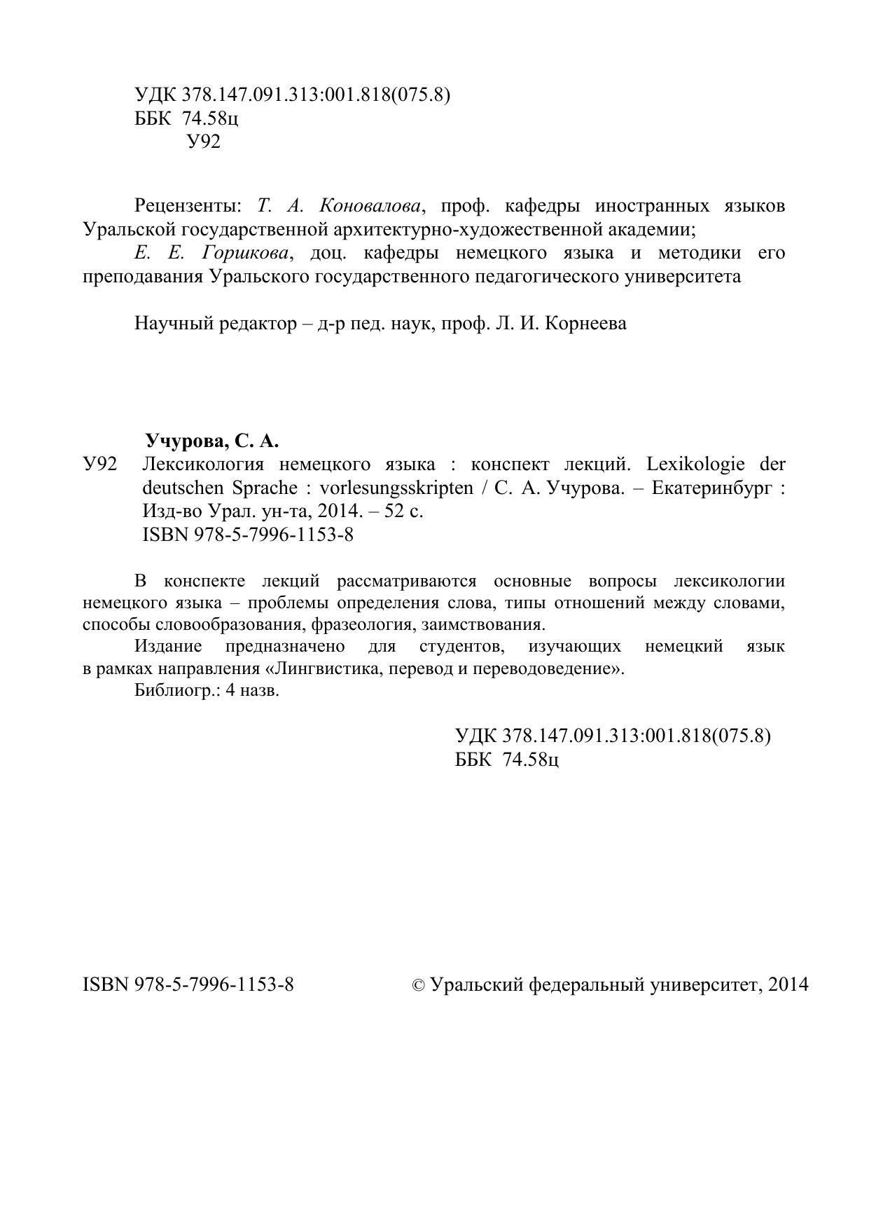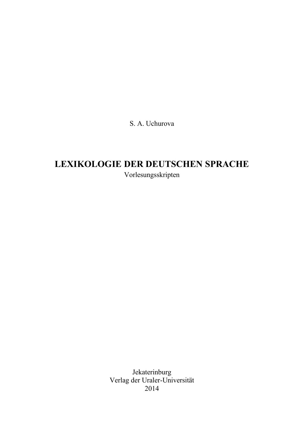 Лексикология немецкого языка : конспект лекций. Lexikologie der deutschen Sprache : vorlesungsskripten