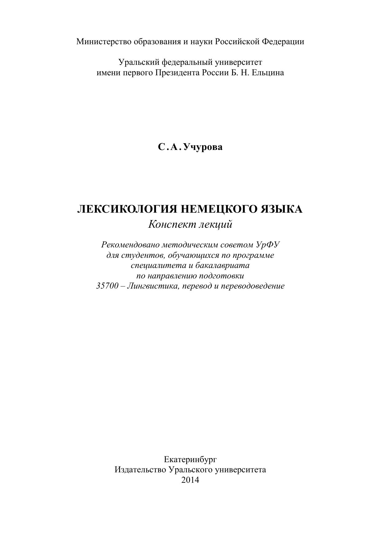 В конспекте лекций рассматриваются основные вопросы лексикологии немецкого языка – проблемы определения слова, типы отношений между словами, способы словообразования, фразеология, заимствования. Издание предназначено для студентов, изучающих немецкий язык в рамках направления «Лингвистика, перевод и переводоведение».