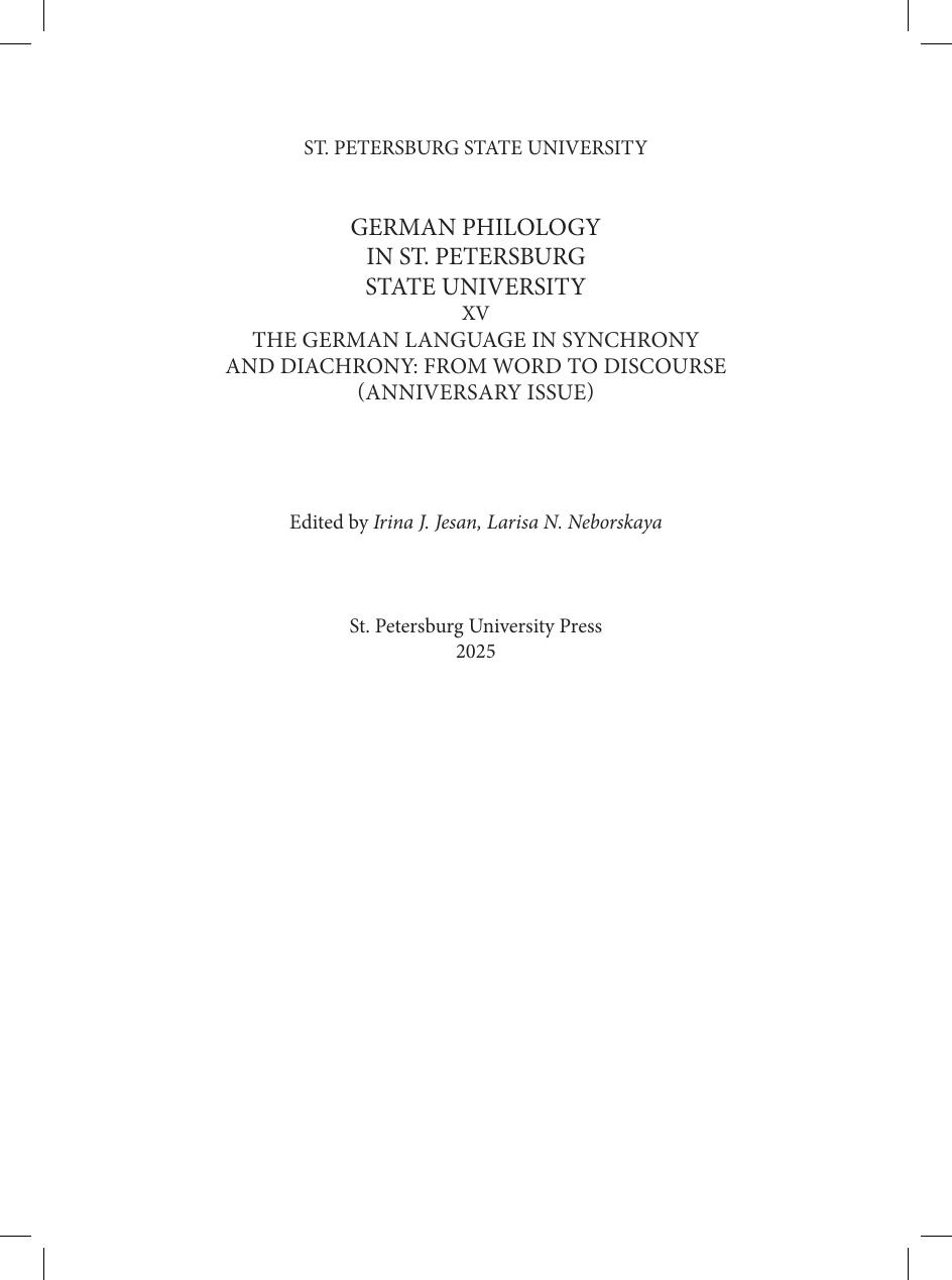 Немецкая филология в Санкт-Петербургском государственном университете. Том 15. Немецкий язык в синхронии и диахронии: от слова к дискурсу (юбилейный выпуск)