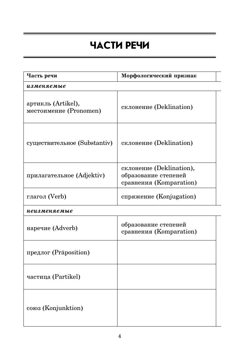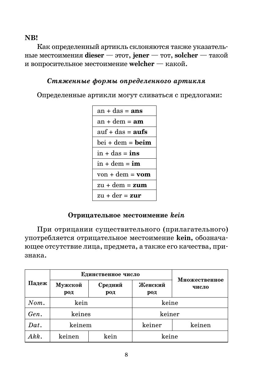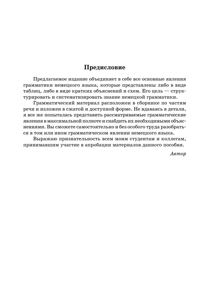 Данное справочное пособие предназначено для широкого круга читателей. Оно призвано помочь изучающим немецкий язык систематизировать и структурировать знания по грамматике. Основные грамматические правила представлены наглядно — в виде таблиц, схем и кратких пояснений. Все объяснения даются на русском языке, что делает возможным использование пособия на разных этапах изучения языка. Кроме грамматики, в книге освещаются и некоторые лексические трудности, с которыми часто приходится сталкиваться учащимся.