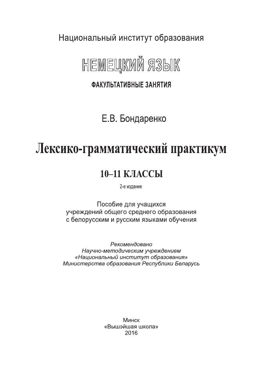 Немецкий язык. Факультативные занятия. Лексико-грамматический практикум: 10–11-е классы: пособие для учащихся учреждений общ. сред. образования с белорус. и рус. яз. обучения