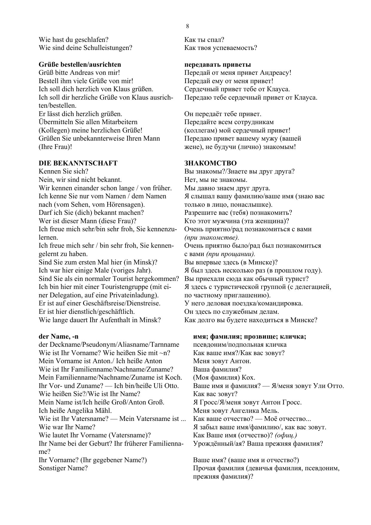 Справочник представляет собой подробный подбор лексического материала по многим темам как из повседневной жизни, так и в области устной и письменной речи. Он предназначен для широкого круга лиц, изучающих немецкий язык или