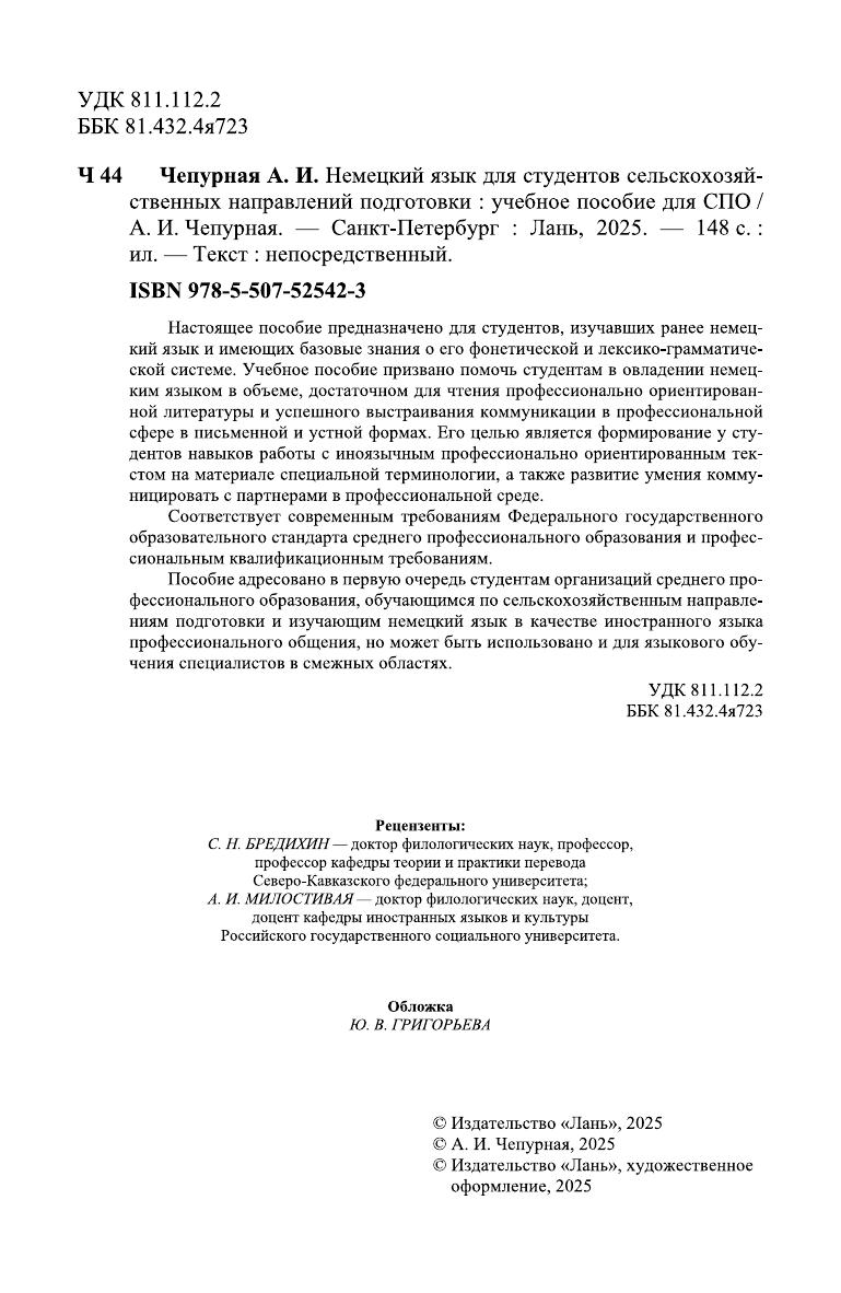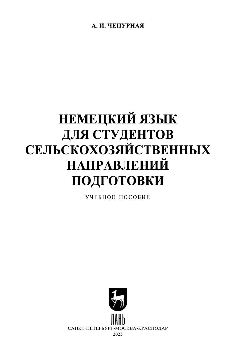 Немецкий язык для студентов сельскохозяйственных направлений подготовки Чепурная А. И.