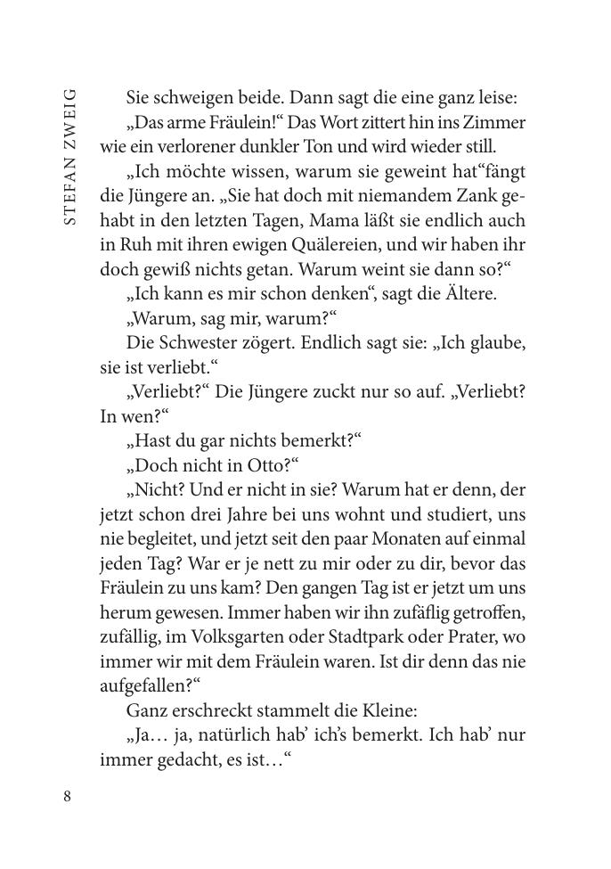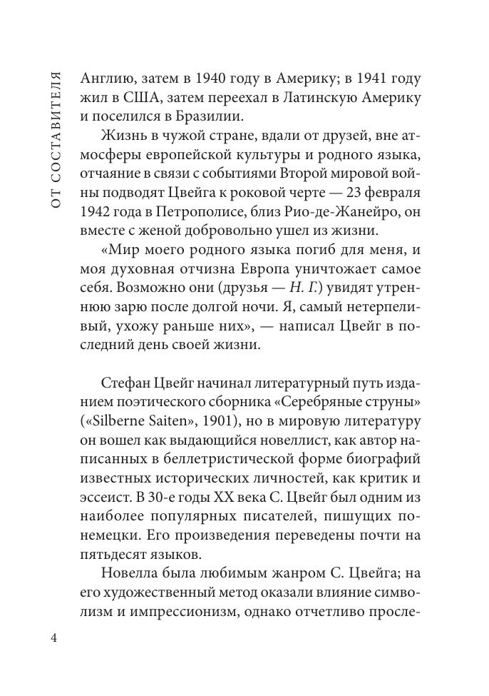 В сборнике представлены наиболее известные новеллы знаменитого австрийского писателя Стефана Цвейга, непревзойденного мастера психологической новеллы, — «Гувернантка», «Страх», «Амок», «Письмо незнакомки», «Шахматная новелла». В книге приводится полный неадаптированный текст новелл, снабженный постраничным комментарием и кратким словарем.