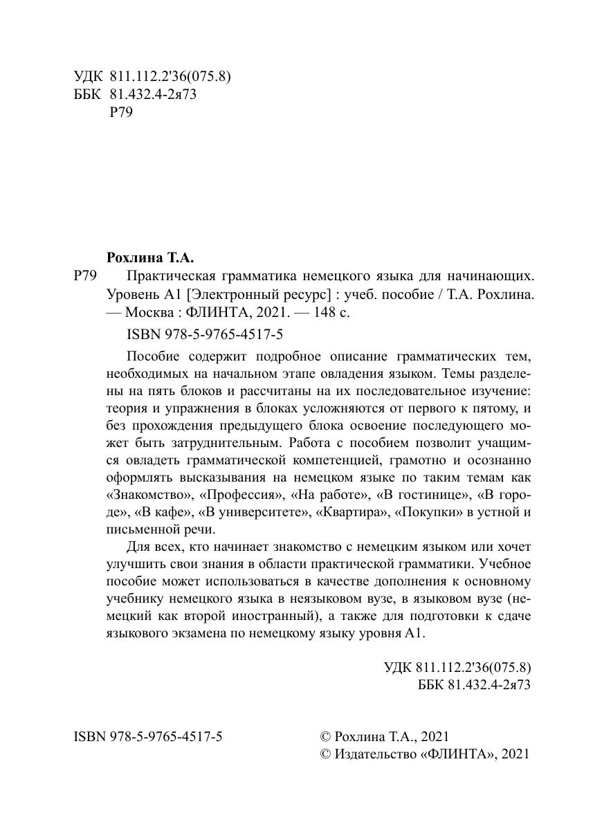 Для всех, кто начинает знакомство с немецким языком или хочет улучшить свои знания в области практической грамматики. Учебное пособие может использоваться в качестве дополнения к основному учебнику немецкого языка в неязыковом вузе, в языковом вузе (немецкий как второй иностранный), а также для подготовки к сдаче языкового экзамена по немецкому языку уровня A1.