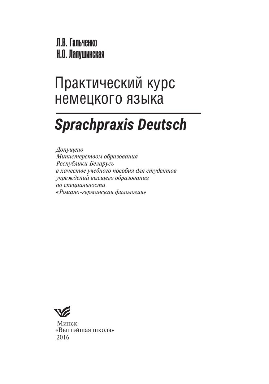 Практический курс немецкого языка = Sprachpraxis Deutsch: учебное пособие