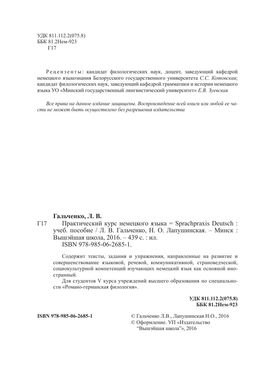 Содержит тексты, задания и упражнения, направленные на развитие и совершенствование языковой, речевой, коммуникативной, страноведческой, социокультурной компетенций изучающих немецкий язык как основной иностранный. Для студентов V курса учреждений высшего образования по специальности «Романо-германская филология».