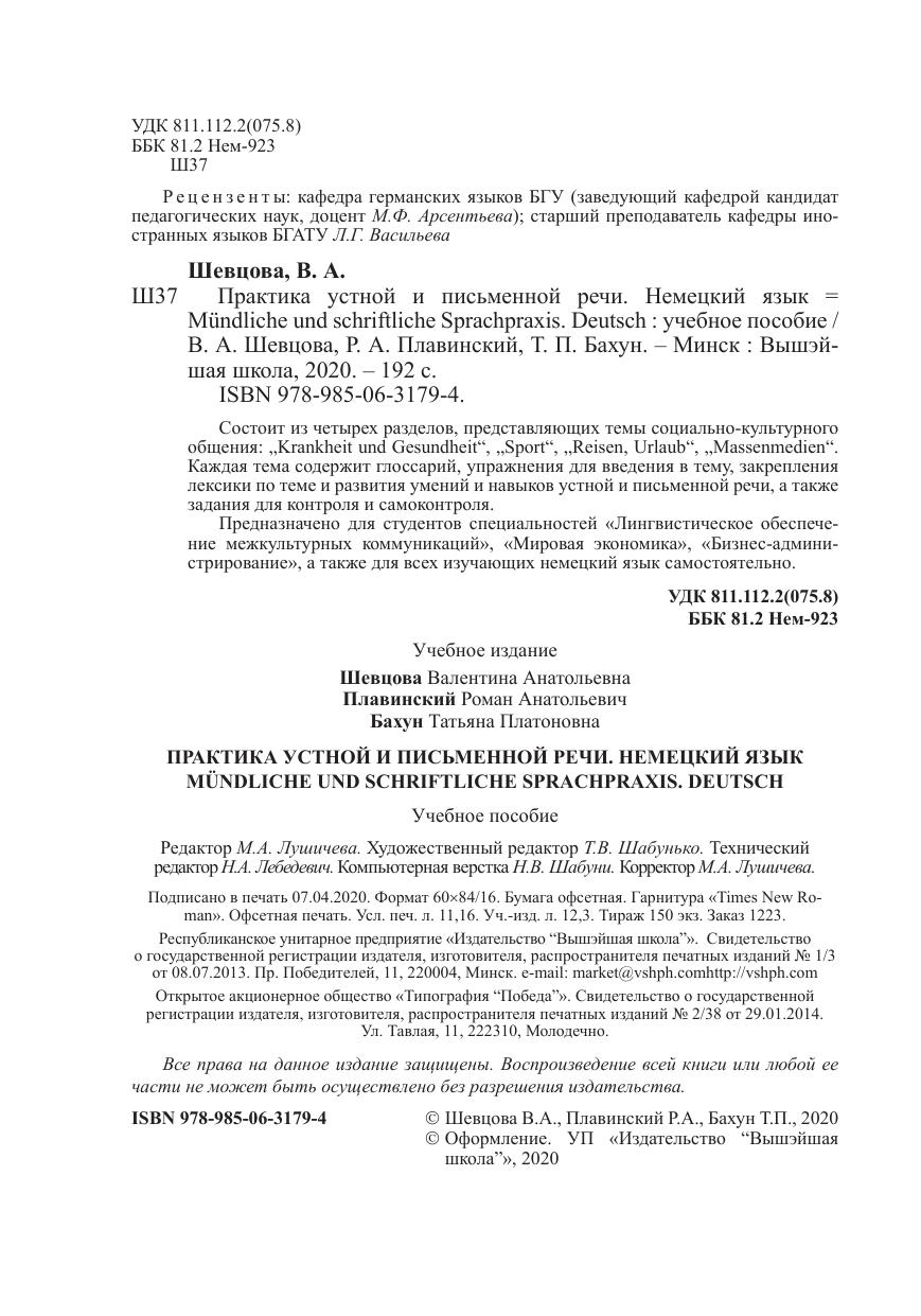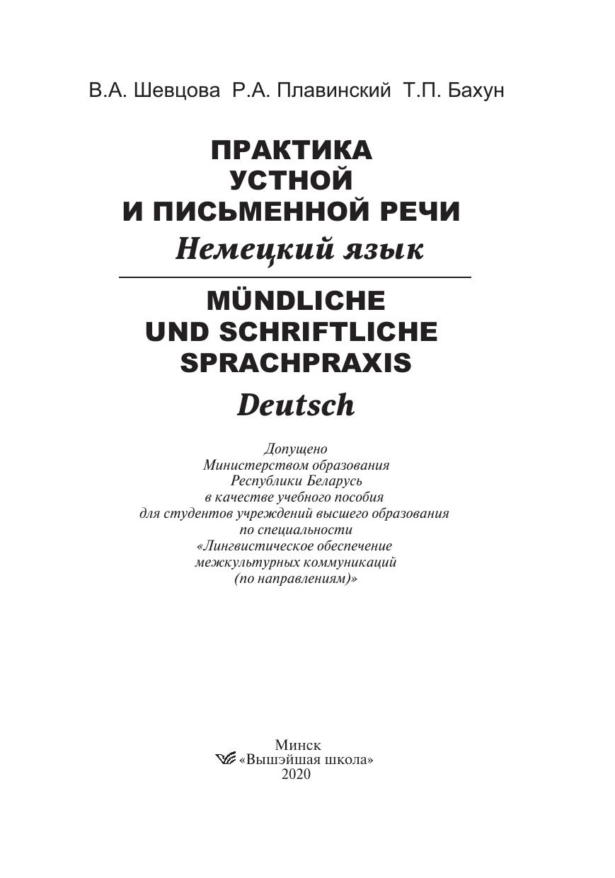 Практика устной и письменной речи. Немецкий язык = Mündliche und schriftliche Sprachpraxis. Deutsch