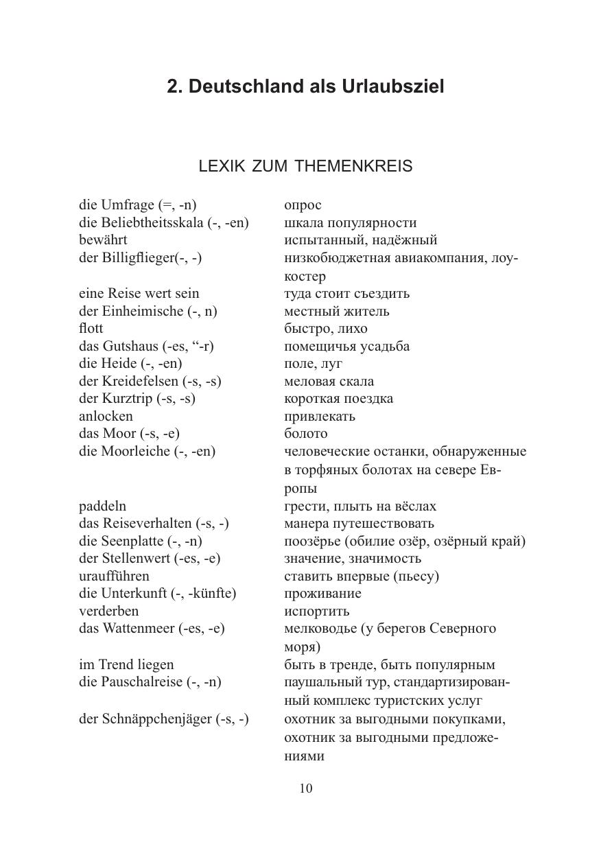 Цель учебного пособия - подготовка бакалавров экономических направлений по дисциплине "Немецкий язык" в соответствии с требованиями государственного образовательного стандарта. Пособие способствует развитию навыков чтения, пониманию и перевода литературы по специальности "Туризм", отработке и усвоению лексического и грамматического материала для последующего использования в профессиональной коммуникации.