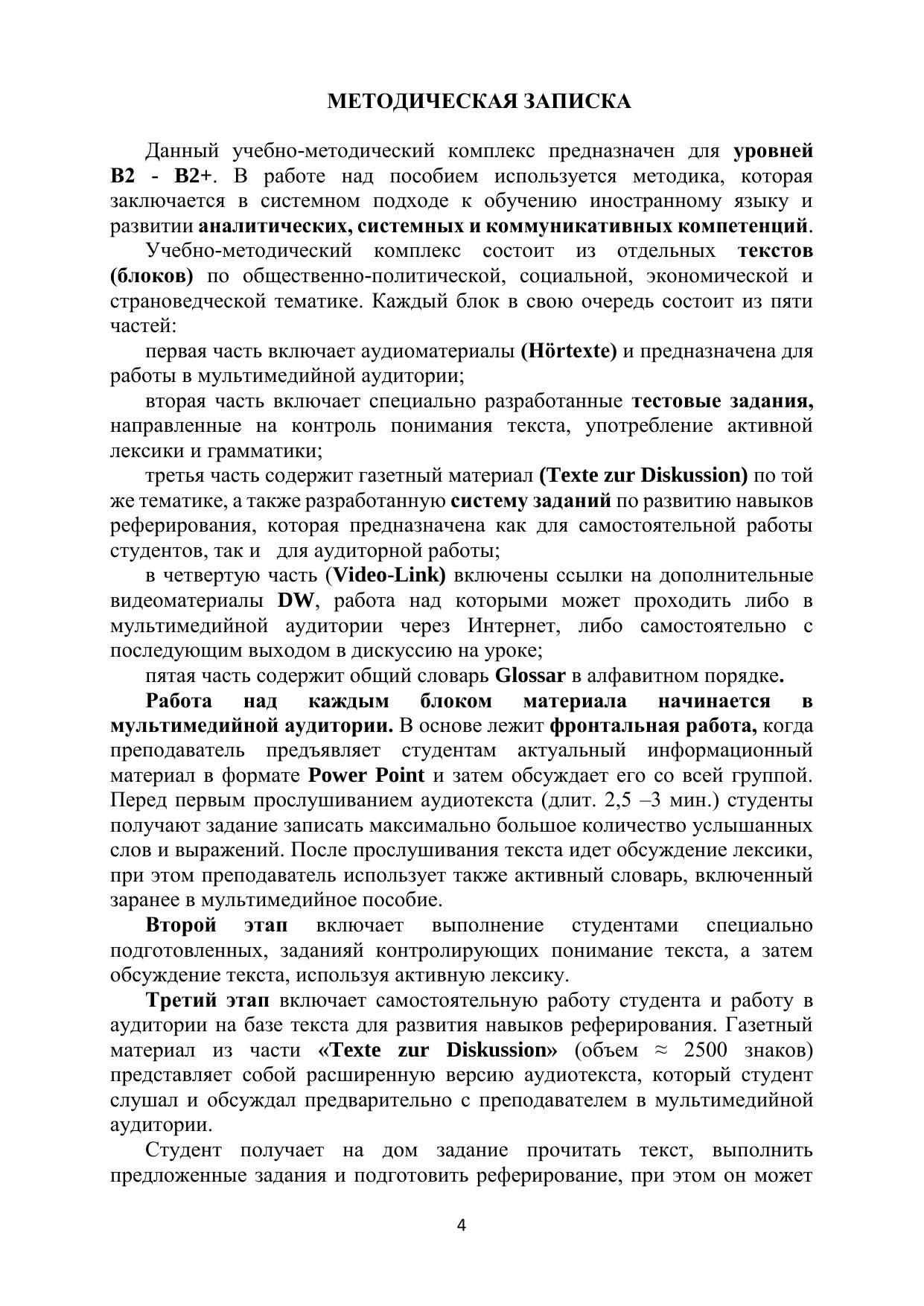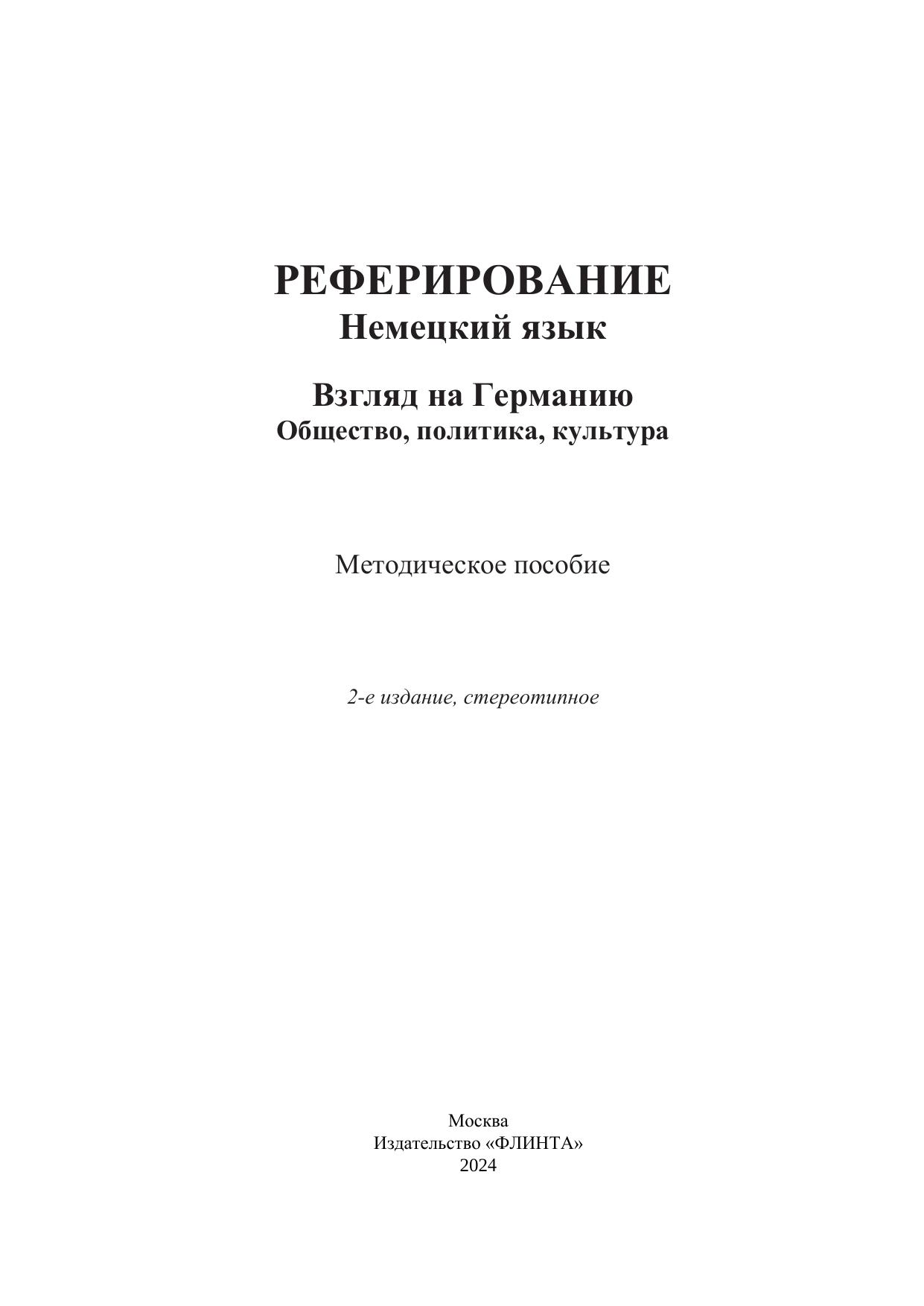 Данное пособие представляет собой курс на немецком языке по дисциплине «Реферирование». В нем рассматриваются такие темы, как общество, политика и культура современной Германии. Принцип данной работы заключается в развитии аналитических, системных и коммуникативных компетенций. Разработано с учётом требований Федерального государственного образовательного стандарта высшего образования и включает именно те темы, которые обычно задают студентам на аттестации для проверки понимания и глубины усвоения материала. Адресовано студентам, обучающимся по направлению подготовки 44.03.05 «Педагогическое образование с двумя профилями подготовки», профилю «Иностранный язык и иностранный язык».