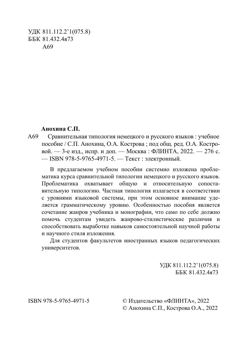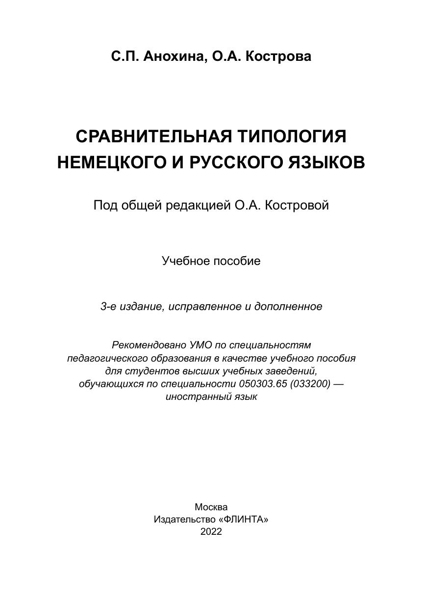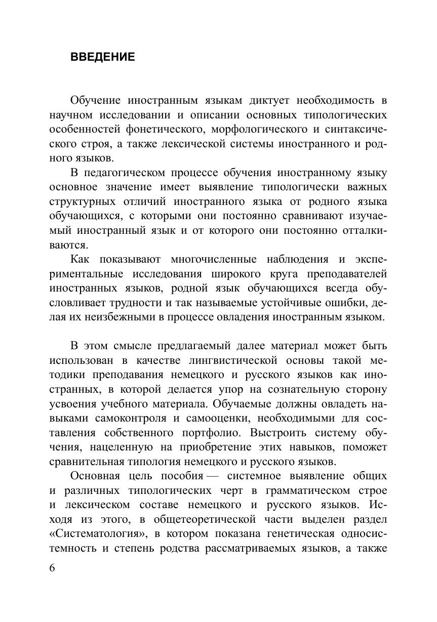В предлагаемом учебном пособии системно изложена проблематика курса сравнительной типологии немецкого и русского языков. Проблематика охватывает общую и относительную сопоставительную типологию. Частная типология излагается в соответствии с уровнями языковой системы, при этом основное внимание уделяется грамматическому уровню. Особенностью пособия является сочетание жанров учебника и монографии, что само по себе должно помочь студентам увидеть жанрово-стилистические различия и способствовать выработке навыков самостоятельной научной работы и научного стиля изложения.