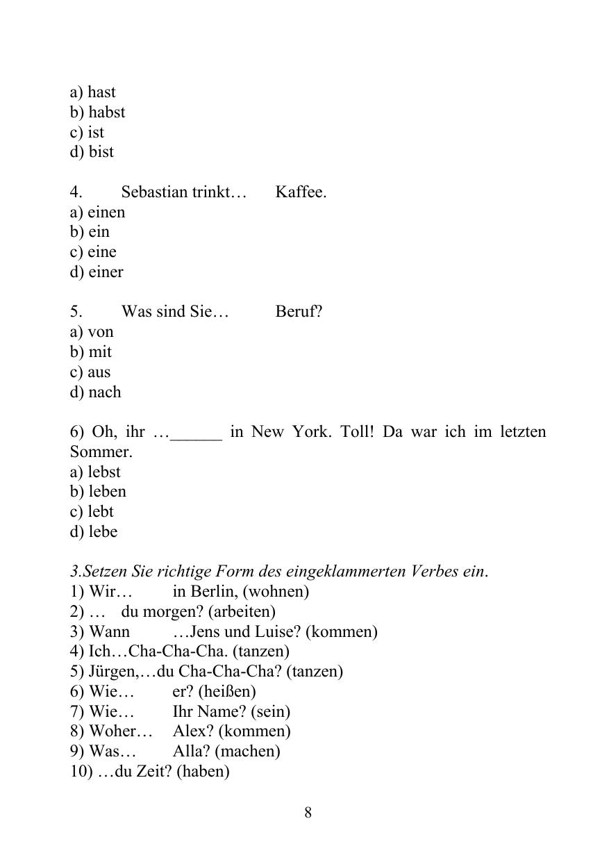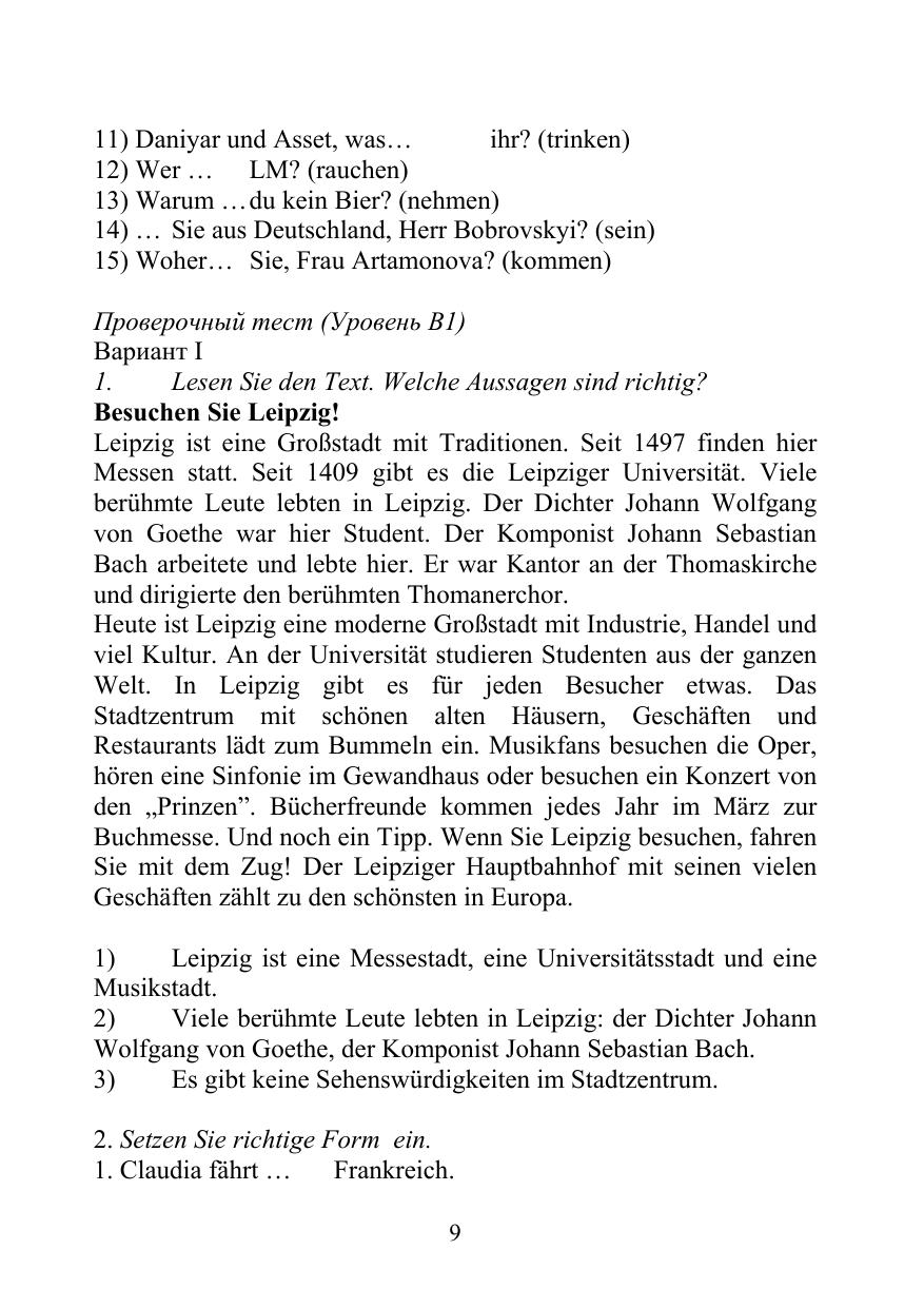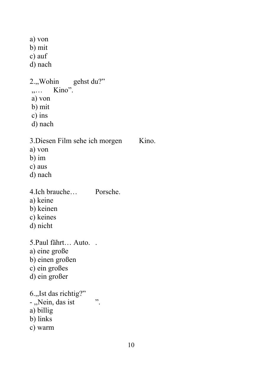 Тесты на определение входного уровня знаний по немецкому языку