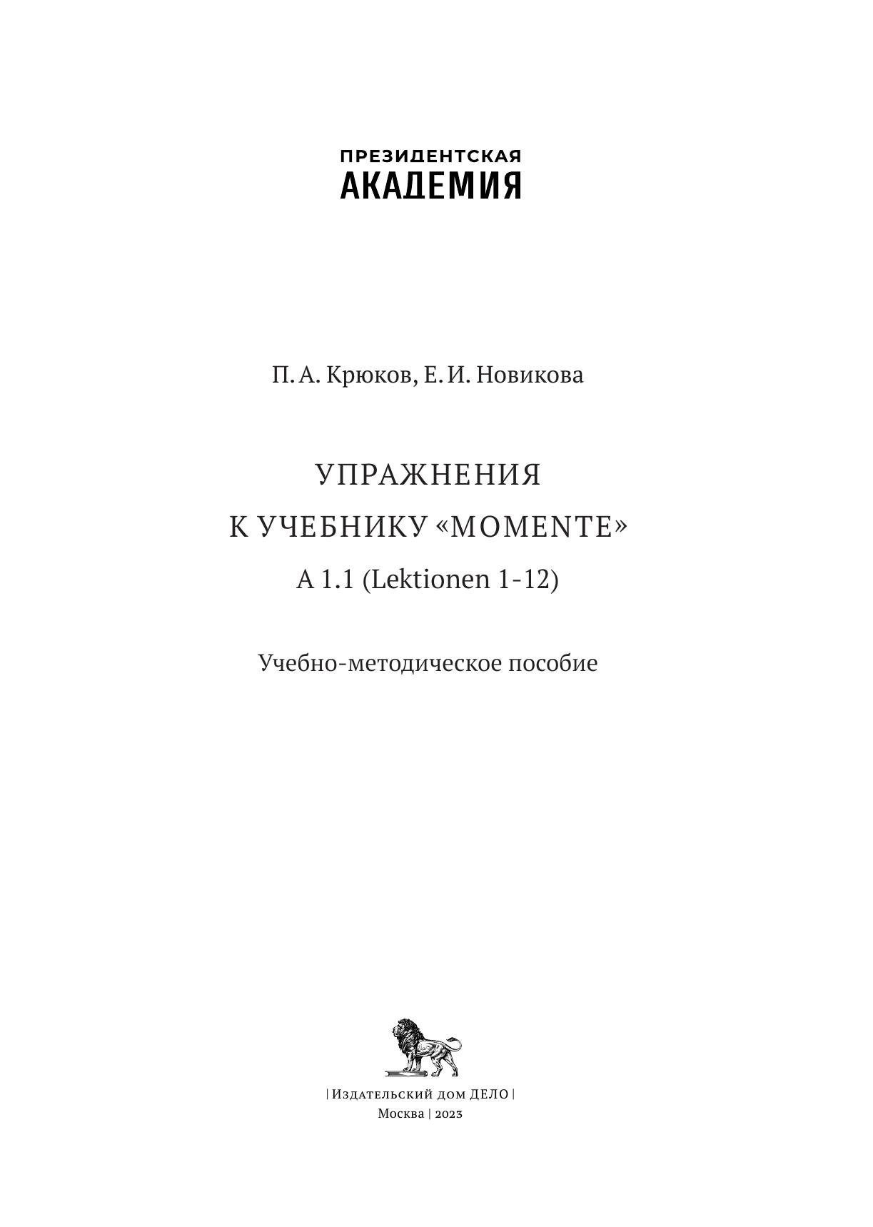 Учебно-методическое пособие содержит упражнения, направленные на автоматизацию грамматических навыков на начальном этапе изучения немецкого языка. Сборник является частью комплекта учебных пособий наряду с учебником Momente A 1.1. Пособие предназначено для студентов 1-2 курсов неязыковых факультетов всех направлений и профилей подготовки бакалавриата.