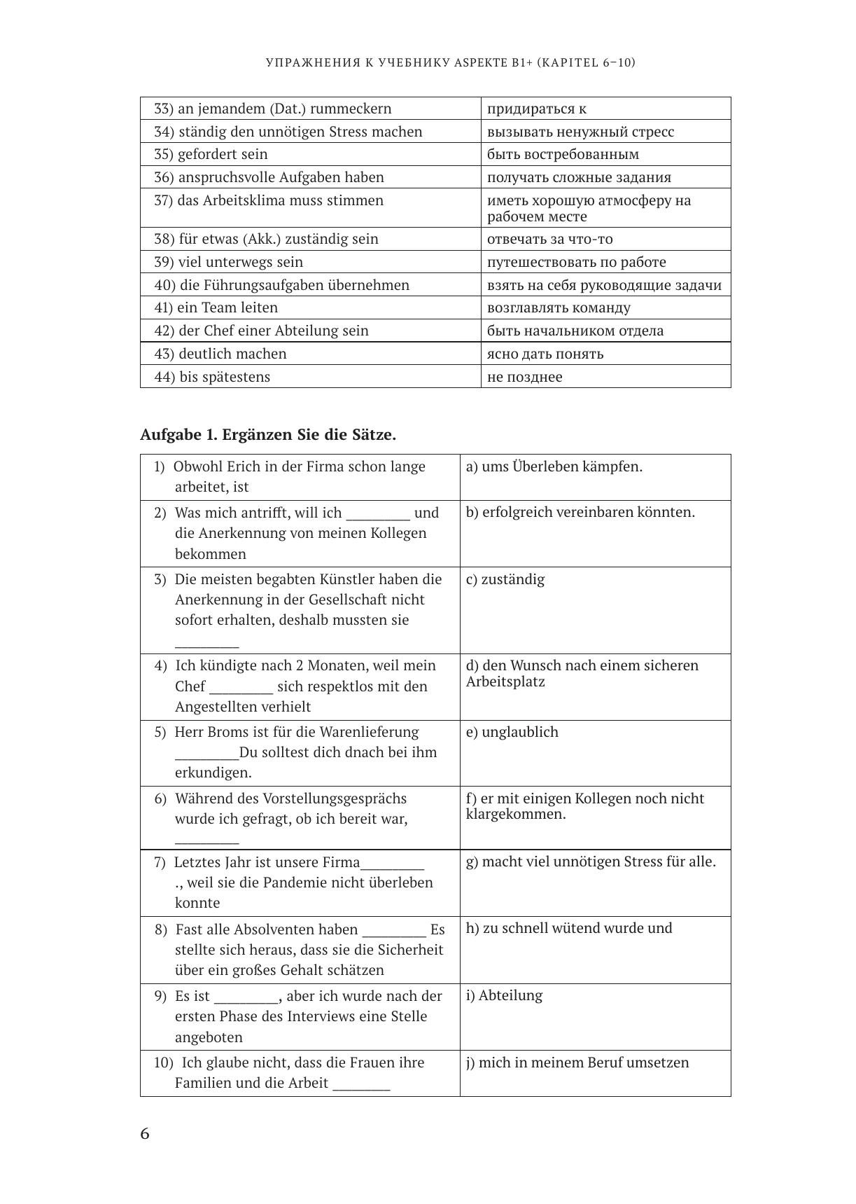 Упражнения к учебнику Aspekte B1+ (Kapitel 6–10). Немецкий язык. Уровень В1+