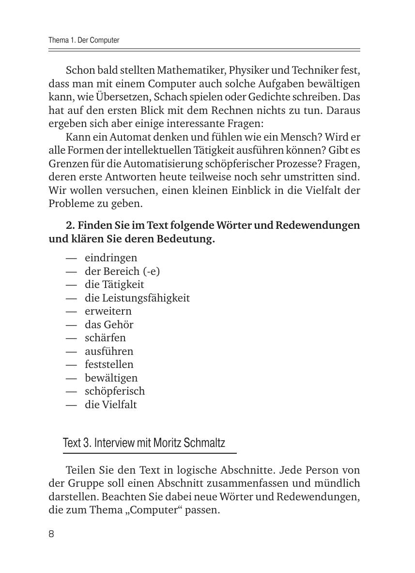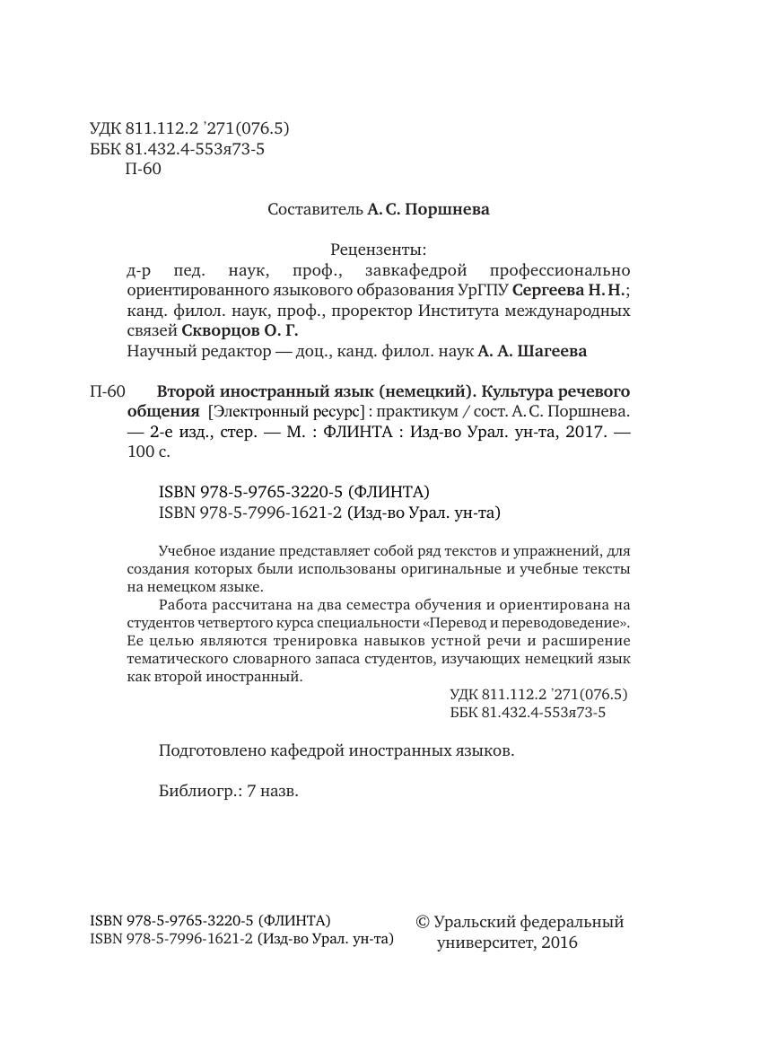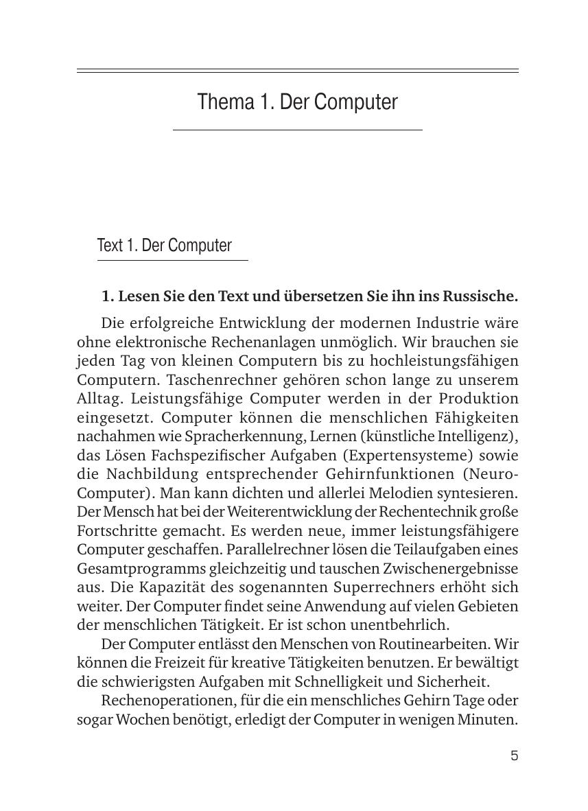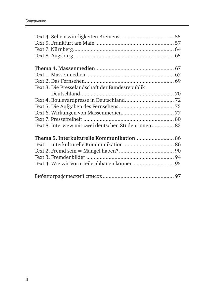 Учебное издание представляет собой ряд текстов и упражнений, для создания которых были использованы оригинальные и учебные тексты на немецком языке. Работа рассчитана на два семестра обучения и ориентирована на студентов четвертого курса специальности «Перевод и переводоведение». Ее целью являются тренировка навыков устной речи и расширение тематического словарного запаса студентов, изучающих немецкий язык как второй иностранный.