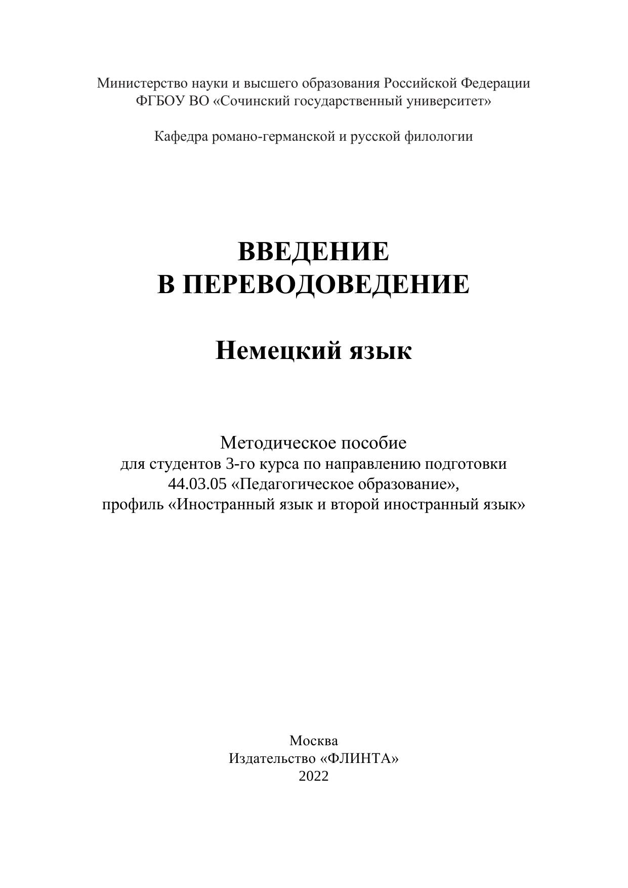 Пособие предназначено для студентов 3-го курса по направлению подготовки 44.03.05 Педагогическое образование по профилю «Иностранный язык и второй иностранный язык» для использования на занятиях по учебной дисциплине «Введение в переводоведение».