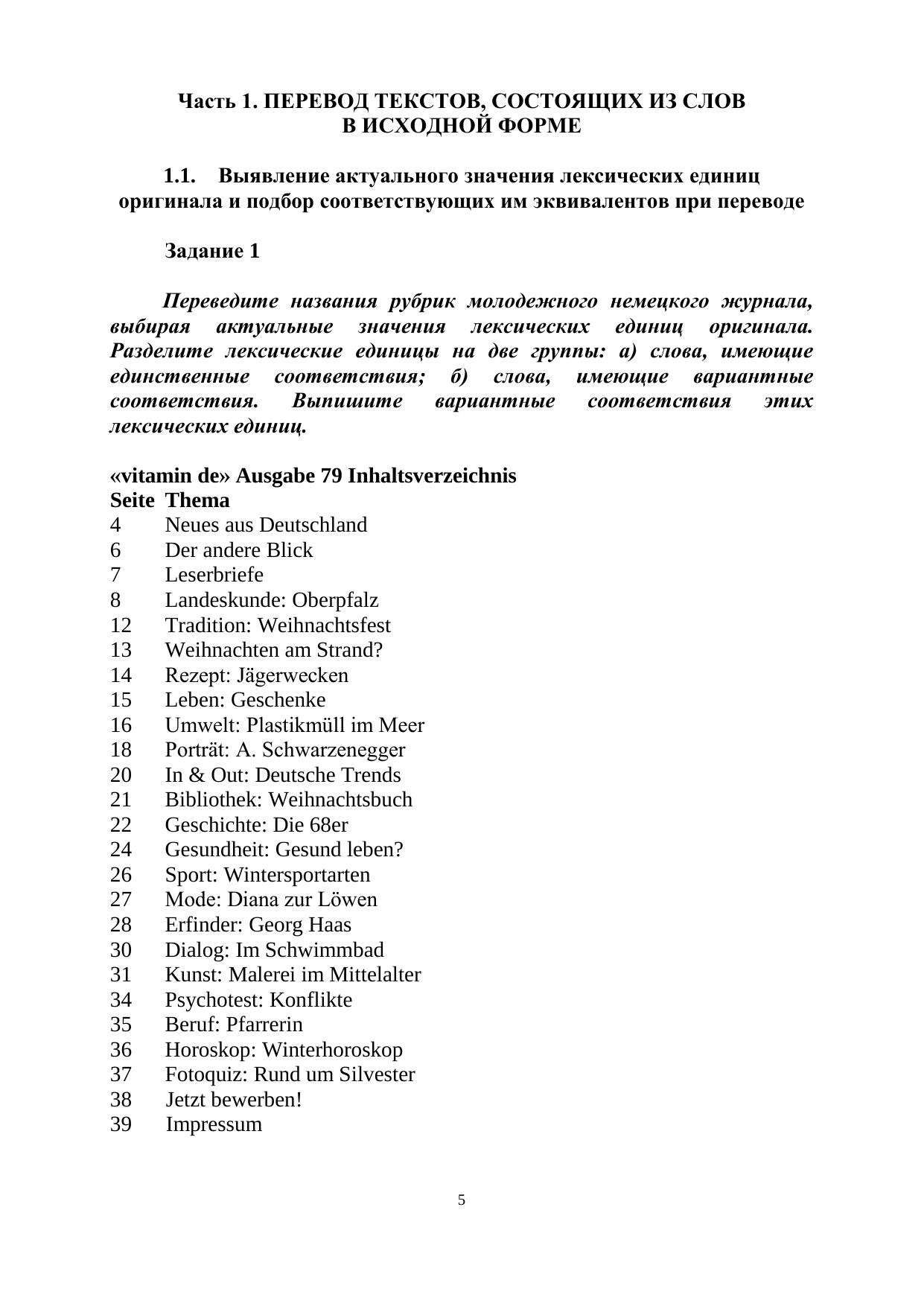 Пособие содержит задания, направленные на развитие умений и навыков переводческой деятельности; включает упражнения для развития первичных навыков перевода с немецкого языка на русский текстов информационного характера, а также отрывков из художественной литературы и публицистики. Освоение материала пособия позволит студентам действовать более осознанно в процессе переводческой деятельности.