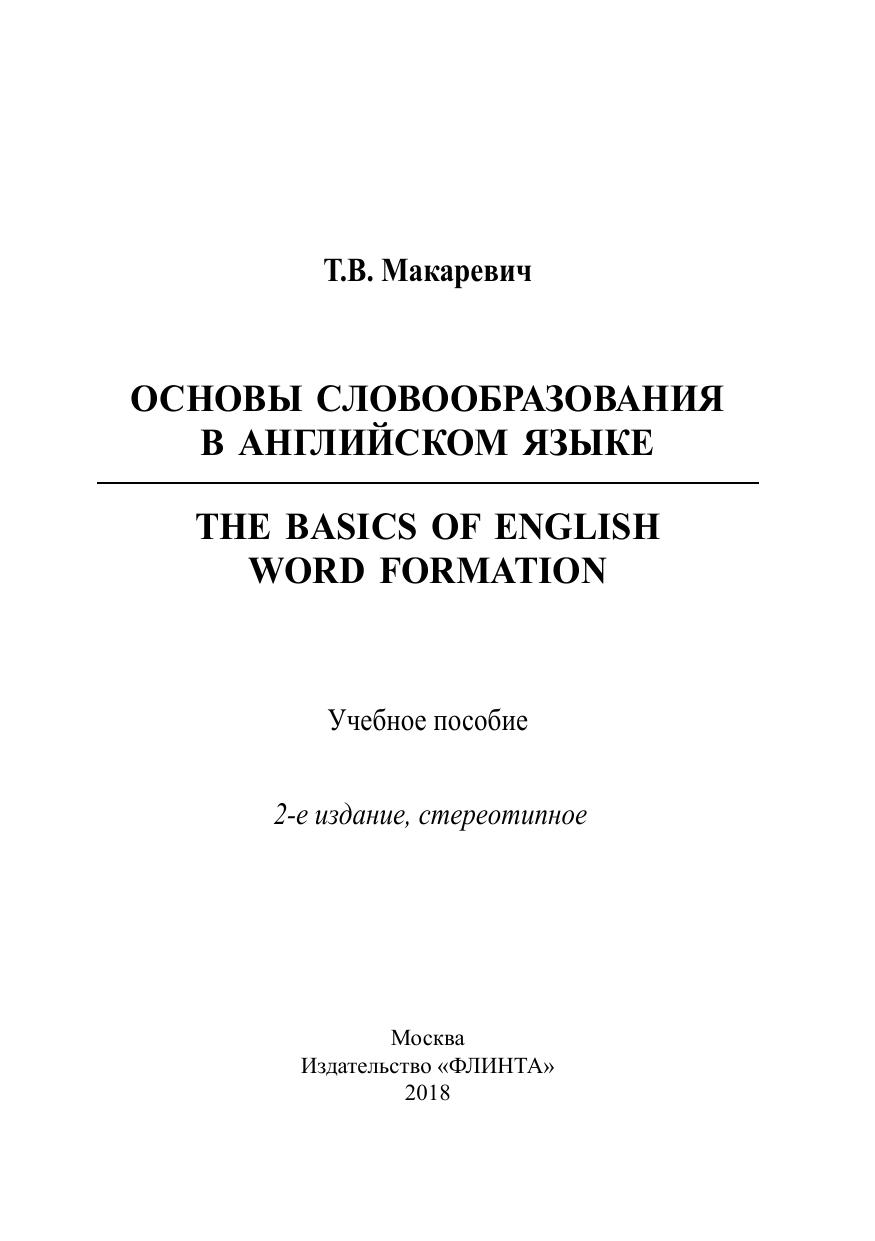 Основы словообразования в английском языке. The Basics of Word Formaftion: учеб. пособие