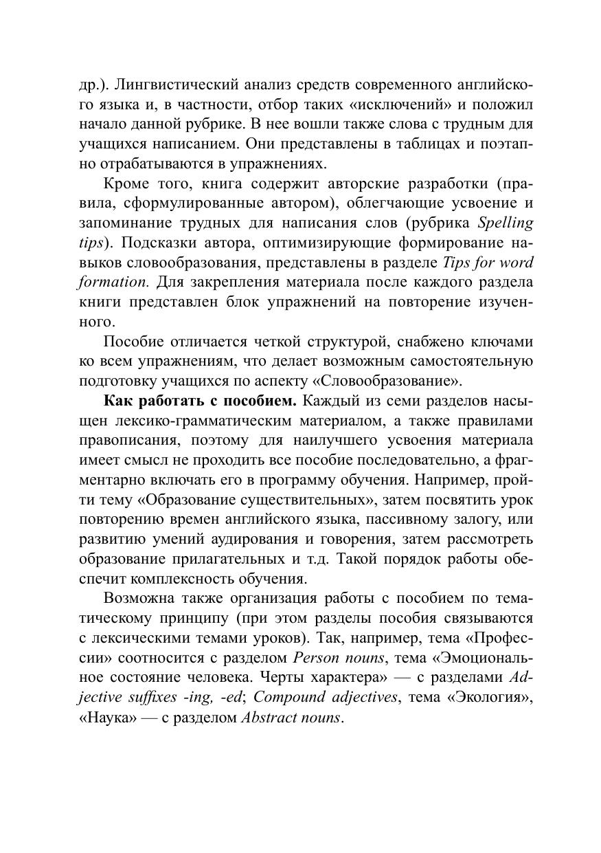 В книге рассматриваются два основных способа словообразования — аффиксация (образование новых слов с помощью суффиксов и префиксов) и словосложение. Пособие содержит выявленные посредством тщательного лингвистического анализа закономерности в словообразовании и правописании, трудные случаи и исключения, а также рекомендации по их запоминанию. Отличие настоящего пособия от существующих заключается в том, что оно позволяет осмысленно и поэтапно, шаг за шагом изучить основы словообразования, сформировать «чувство языка», расширить словарный запас, улучшить правописание.