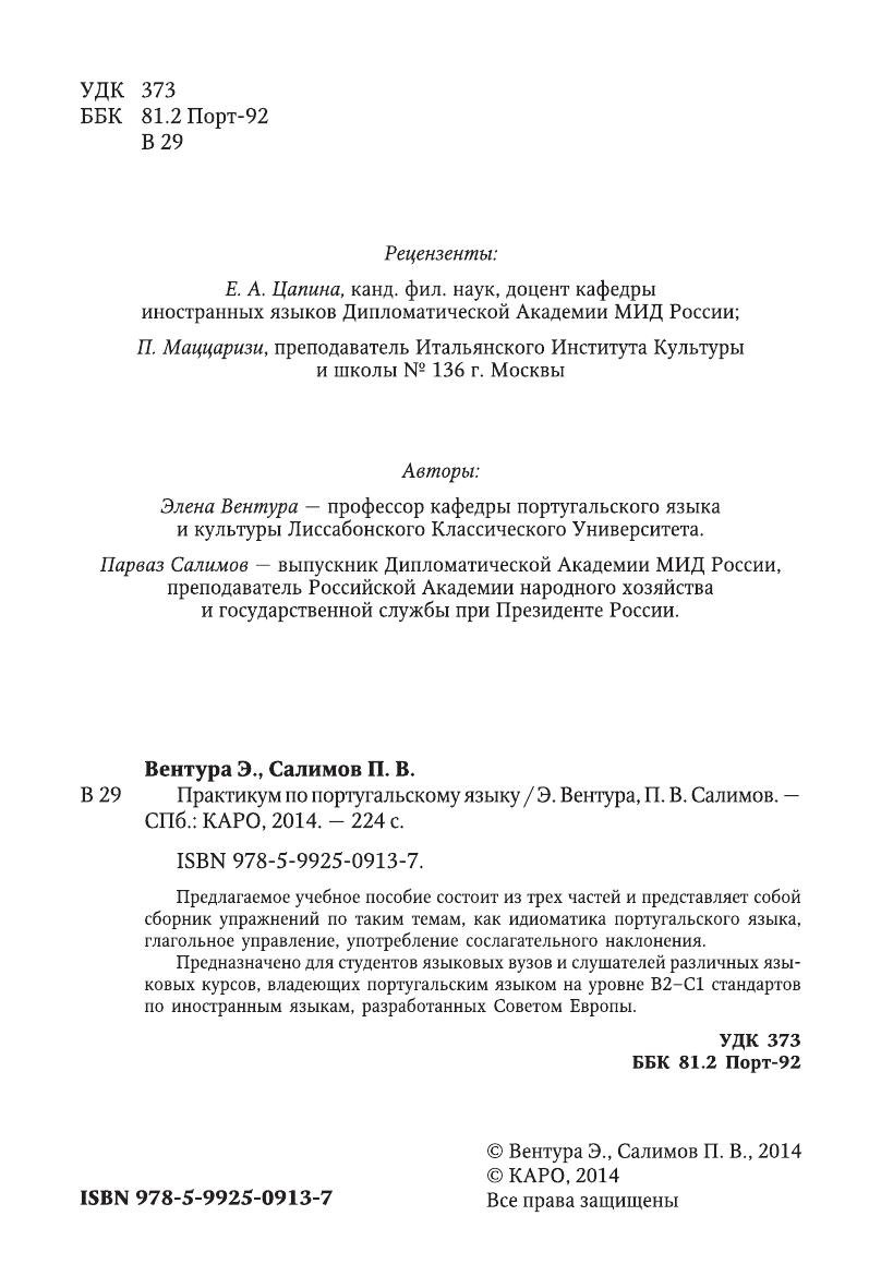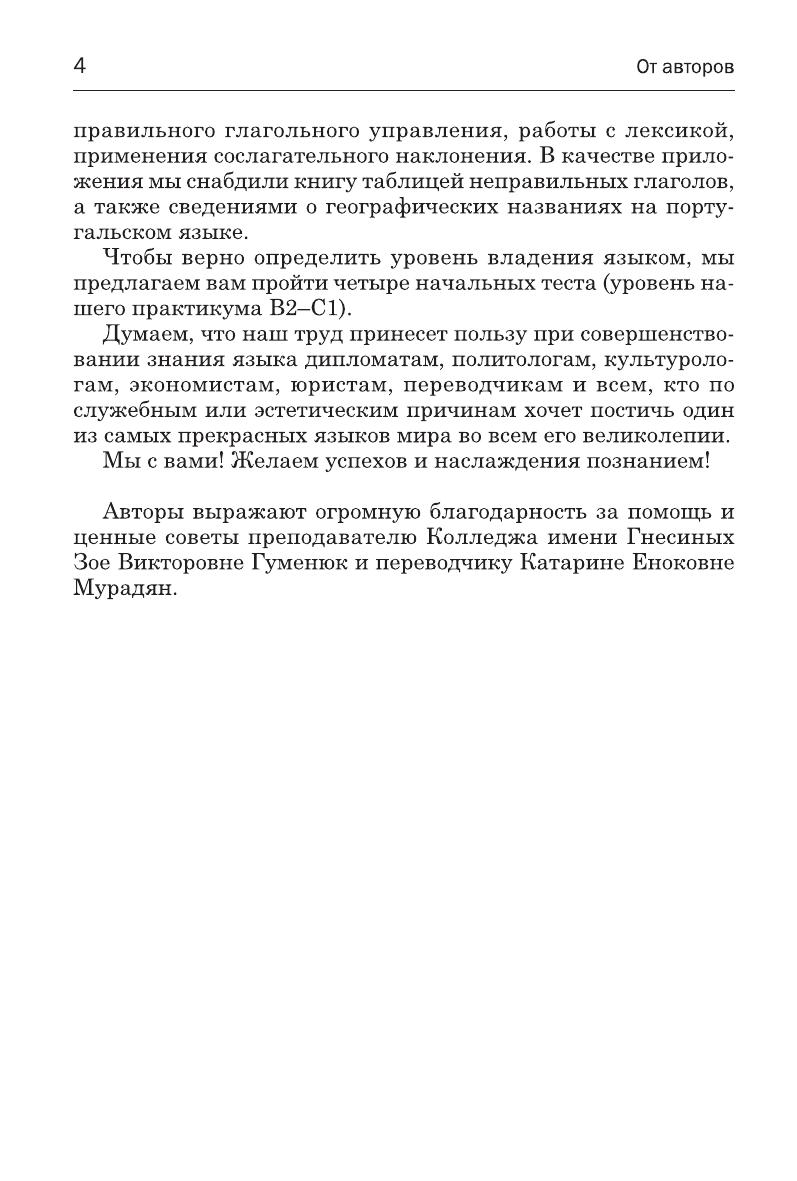 Предназначено для студентов языковых вузов и слушателей различных языковых курсов, владеющих португальским языком на уровне В2-С1 стандартов по иностранным языкам, разработанных Советом Европы.