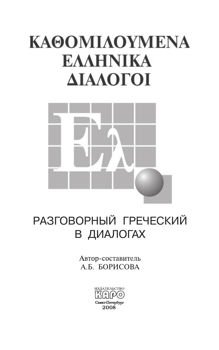 Это пособие предназначено для тех, кто хочет овладеть греческой разговорной речью. Оно построено по коммуникативному принципу и знакомит с основными ситуациями повседневного общения как за рубежом, так и при приеме иностранных гостей у себя в стране. Тщательно отобранный и точный в плане выражения современный языковой материал, записанный на диск, делает диалоги живыми и удобными для непосредственного практического использования.