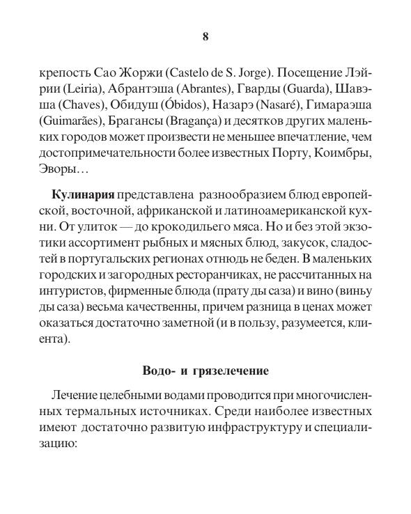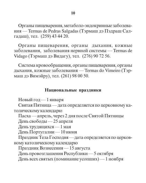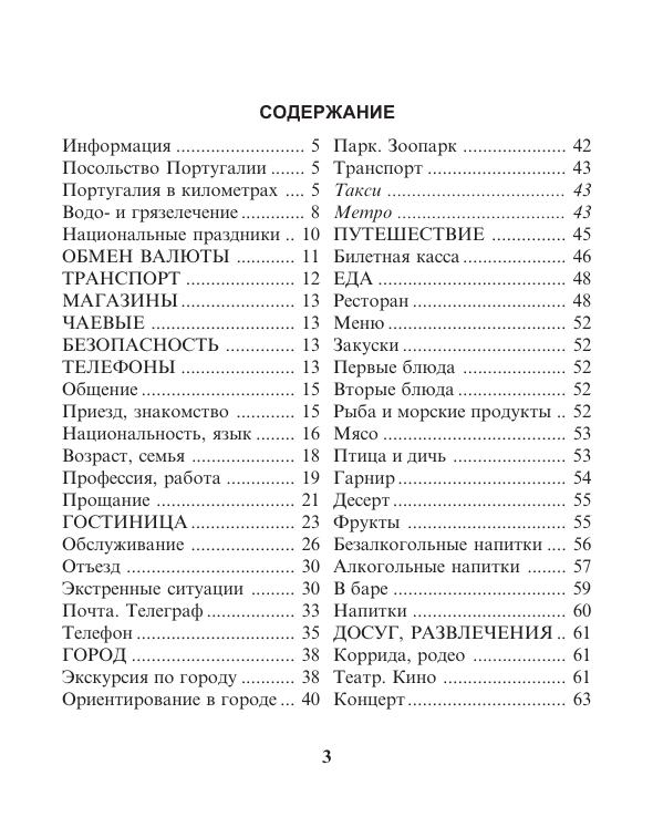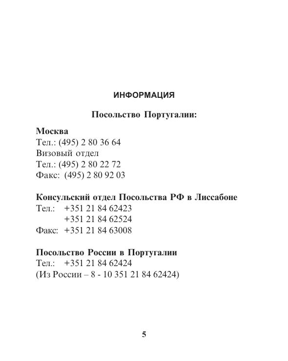 В путешествии по Португалии вы сможете увидеть множество удивительных вещей: памятники римского и арабского владычества, средневековые замки, монастыри, доисторические долманы. А в представленном русско-португальском разговорнике вы найдёте все основные слова и фразы, которые могут пригодиться вам в путешествии. Лексика разделена по темам: знакомство, обслуживание, еда, транспорт, медицина. Перед словарной частью есть справочная информация о посольствах, банках, магазинах и даже адреса с номерами телефонов мест с популярной туристической услугой: процедура водо- и грязелечения.
