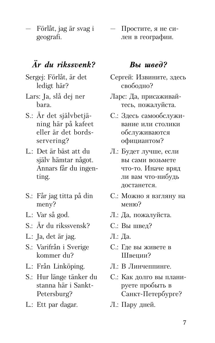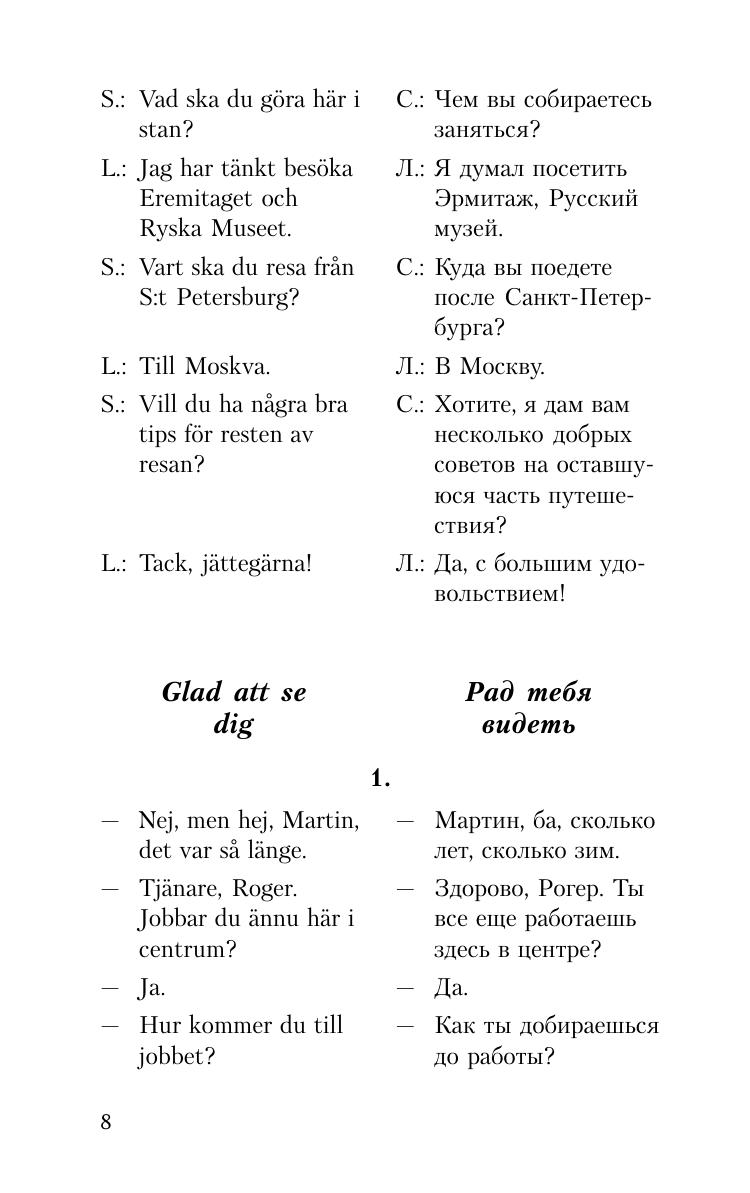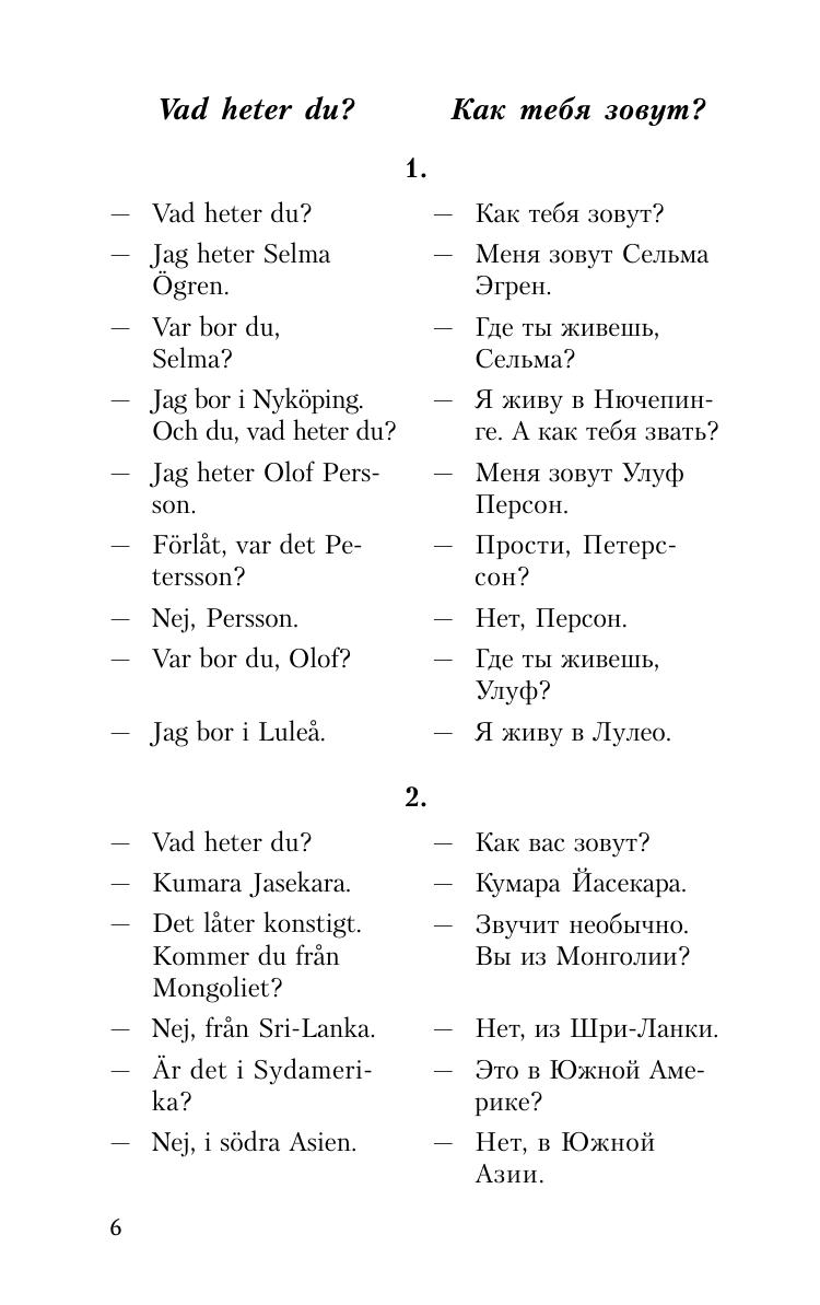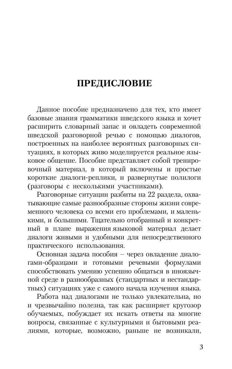Это пособие предназначено для тех, кто хочет овладеть шведской разговорной речью. Оно построено по коммуникативному принципу и знакомит с основными ситуациями повседневного общения как за рубежом, так и при приеме иностранных гостей у себя в стране.