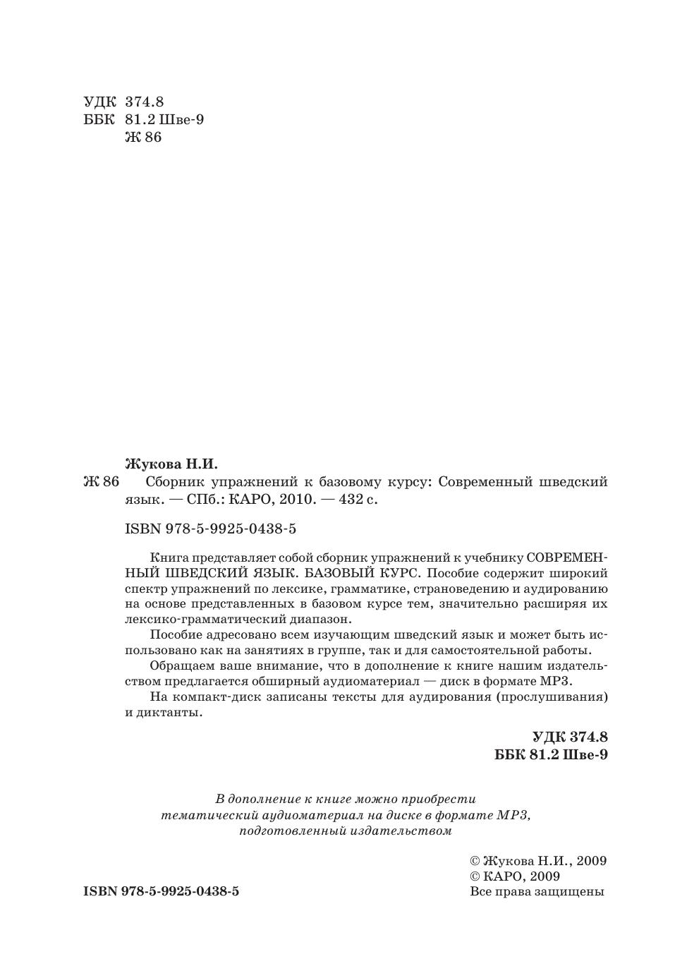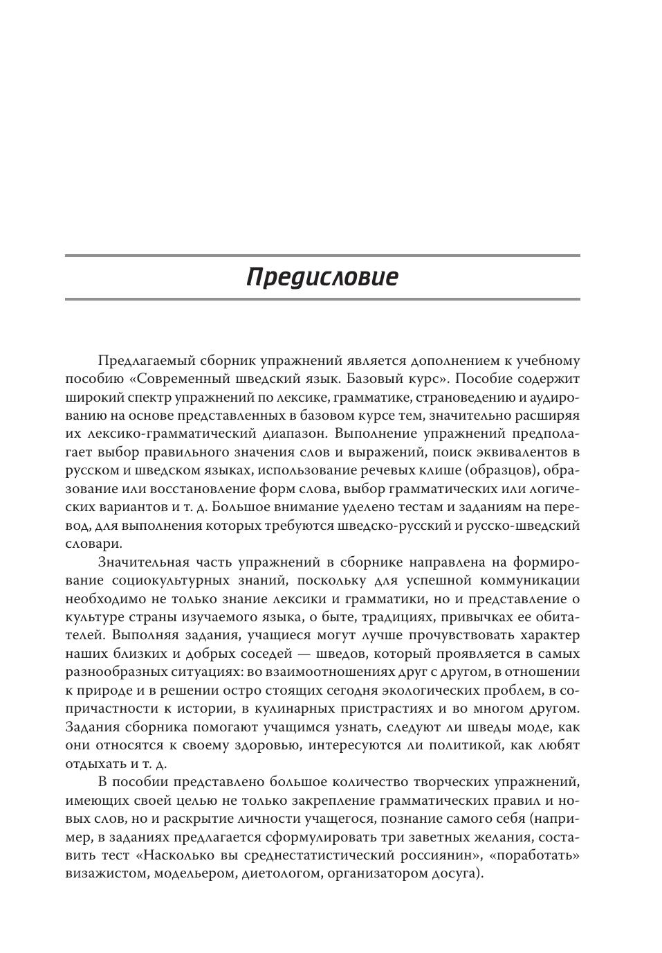 Книга представляет собой сборник упражнений к учебнику СОВРЕМЕННЫЙ ШВЕДСКИЙ ЯЗЫК. БАЗОВЫЙ КУРС. Пособие содержит широкий спектр упражнений по лексике, грамматике, страноведению и аудированию на основе представленных в базовом курсе тем, значительно расширяя их лексико-грамматический диапазон.Пособие адресовано всем изучающим шведский язык и может быть использовано как на занятиях в группе, так и для самостоятельной работы.Обращаем ваше внимание, что в дополнение к книге нашим издательством предлагается обширный аудиоматериал — диск в формате МР3.На компакт-диск записаны тексты для аудирования (прослушивания) и диктанты.