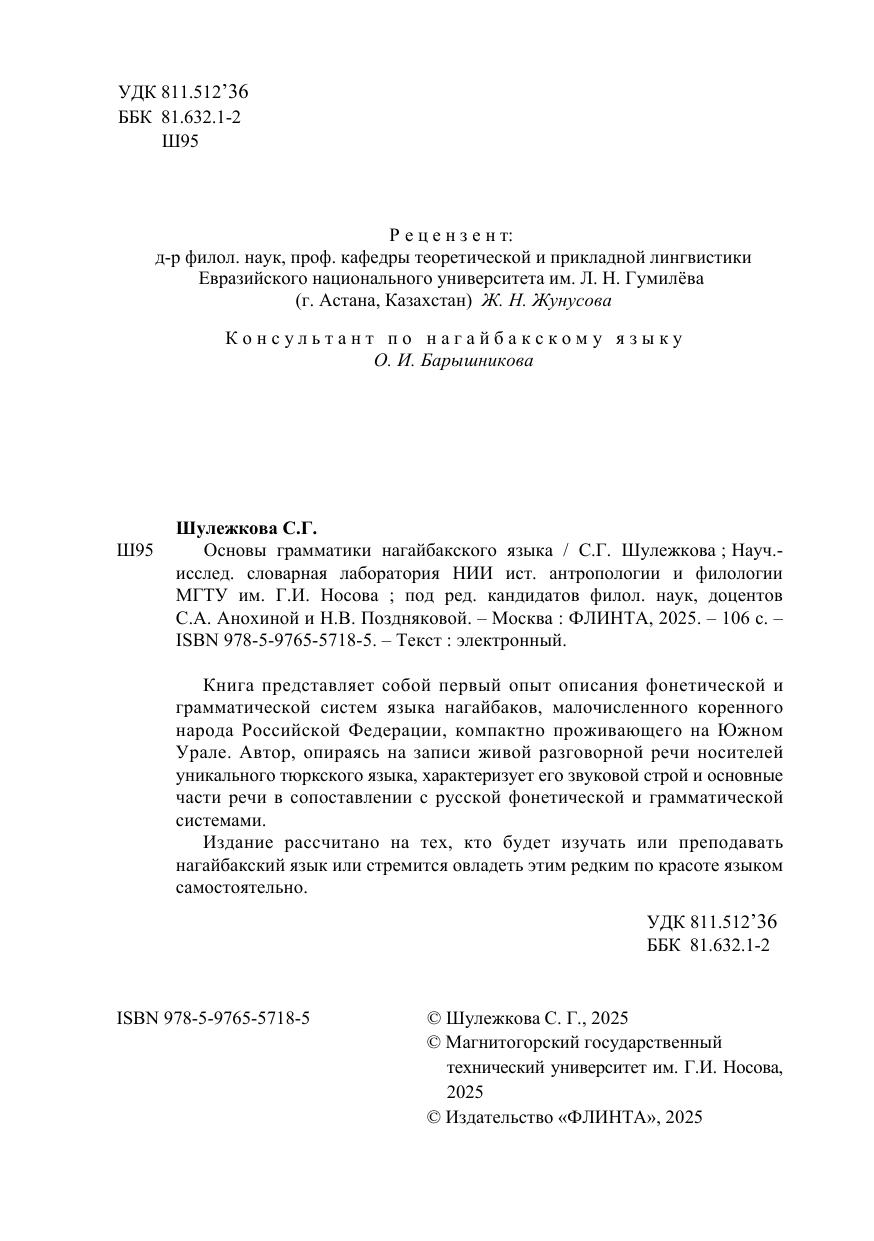 Издание рассчитано на тех, кто будет изучать или преподавать нагайбакский язык или стремится овладеть этим редким по красоте языком самостоятельно.
