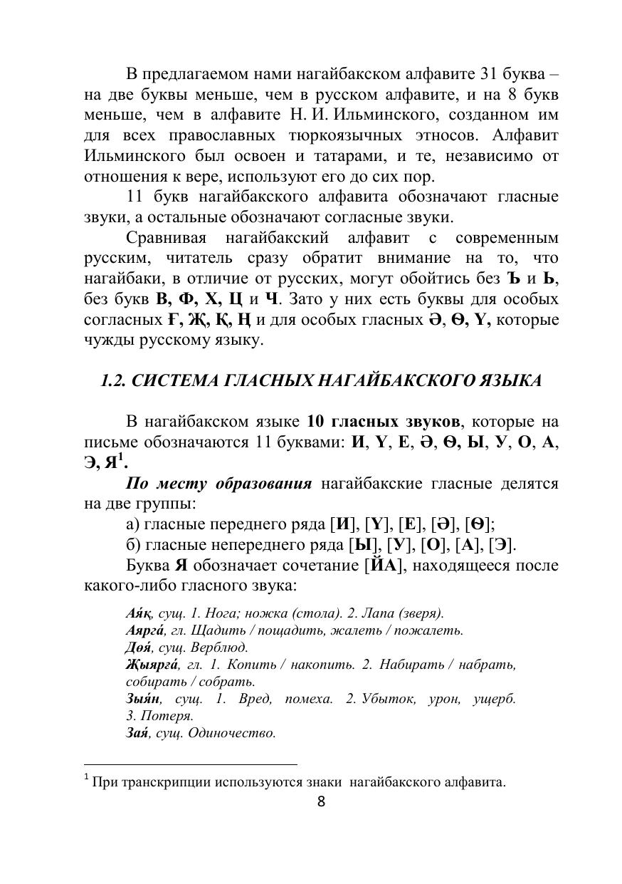 Книга представляет собой первый опыт описания фонетической и грамматической систем языка нагайбаков, малочисленного коренного народа Российской Федерации, компактно проживающего на Южном Урале. Автор, опираясь на записи живой разговорной речи носителей уникального тюркского языка, характеризует его звуковой строй и основные части речи в сопоставлении с русской фонетической и грамматической системами.