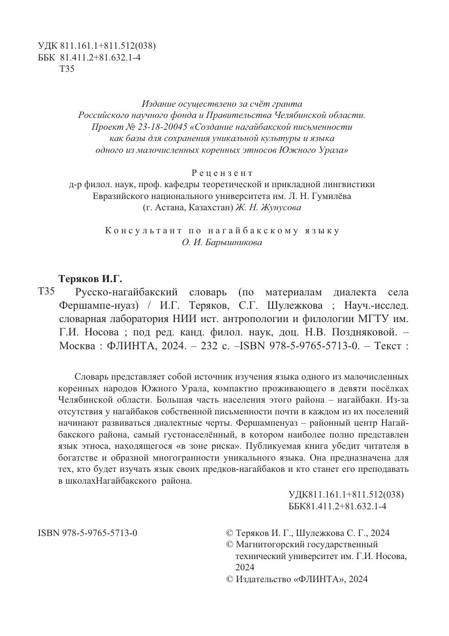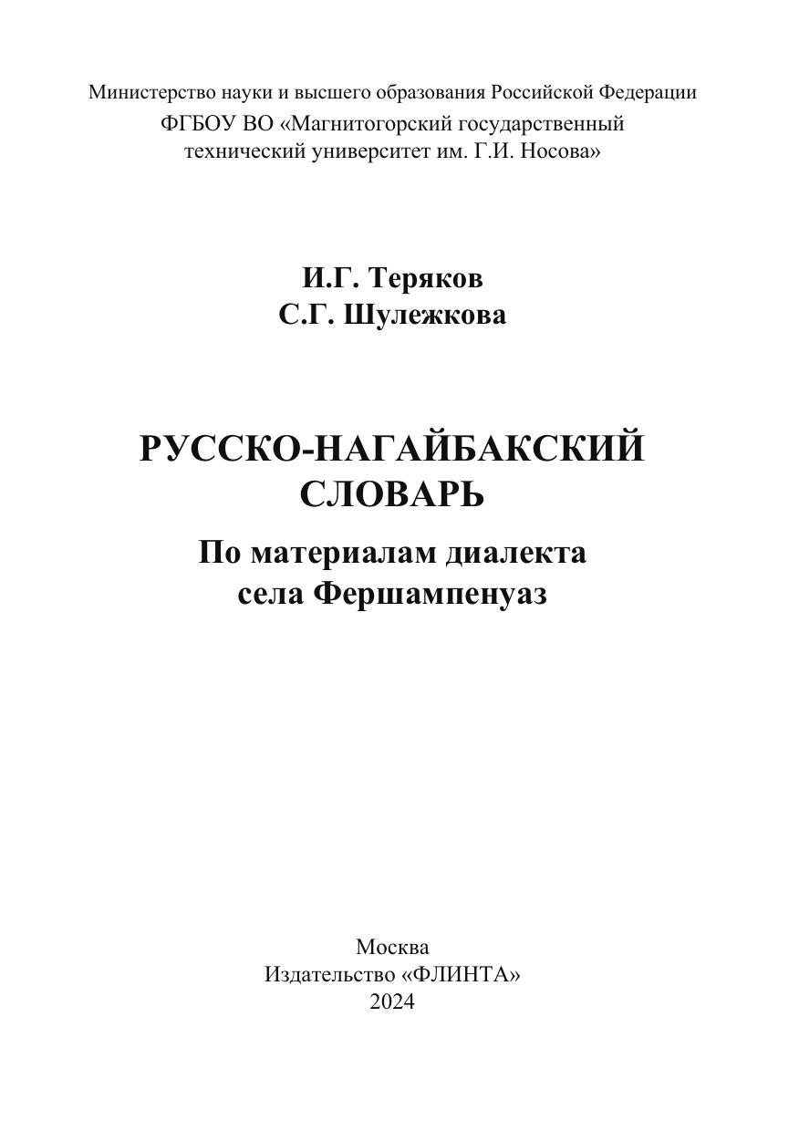 Русско-нагайбакский словарь (по материалам диалекта села Фершампенуаз)