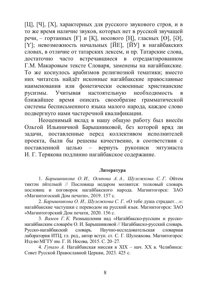Словарь представляет собой источник изучения языка одного из малочисленных коренных народов Южного Урала, компактно проживающего в девяти посёлках Челябинской области. Большая часть населения этого района – нагайбаки. Из-за